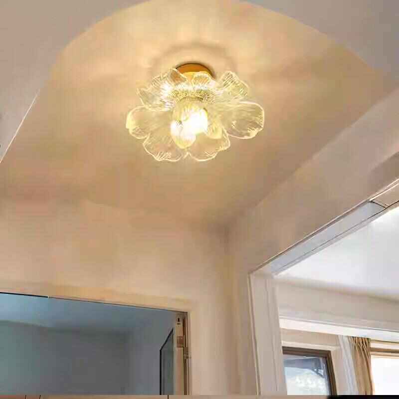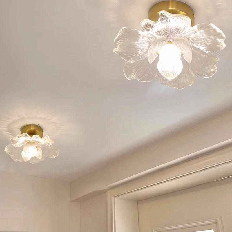 全铜新款花瓣过道灯走廊三头简约阳台灯楼梯衣帽间入户玄关吸顶灯