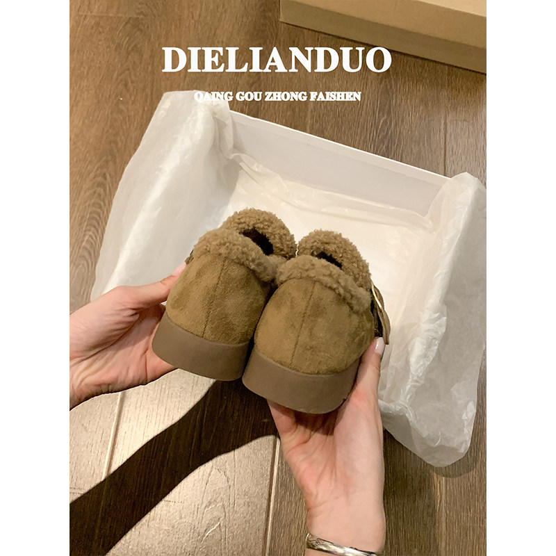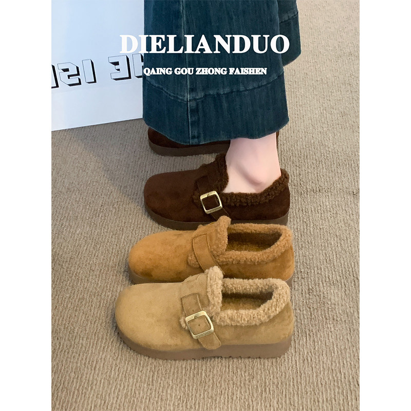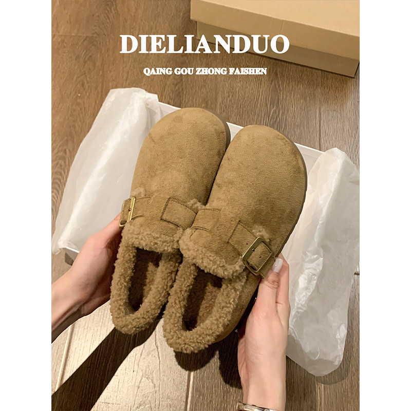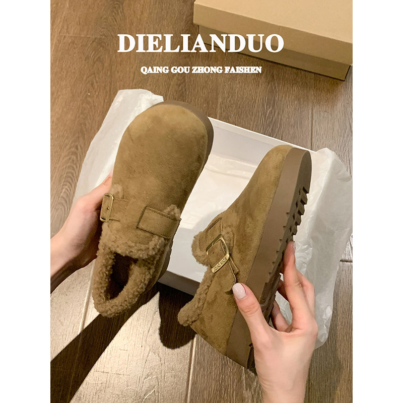 厚底勃肯鞋女款2025新款秋冬季加绒保暖毛毛鞋防滑雪地棉鞋子女鞋