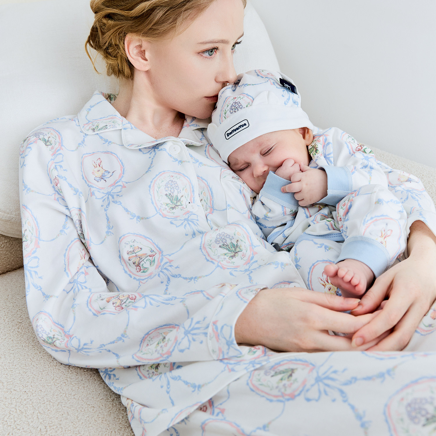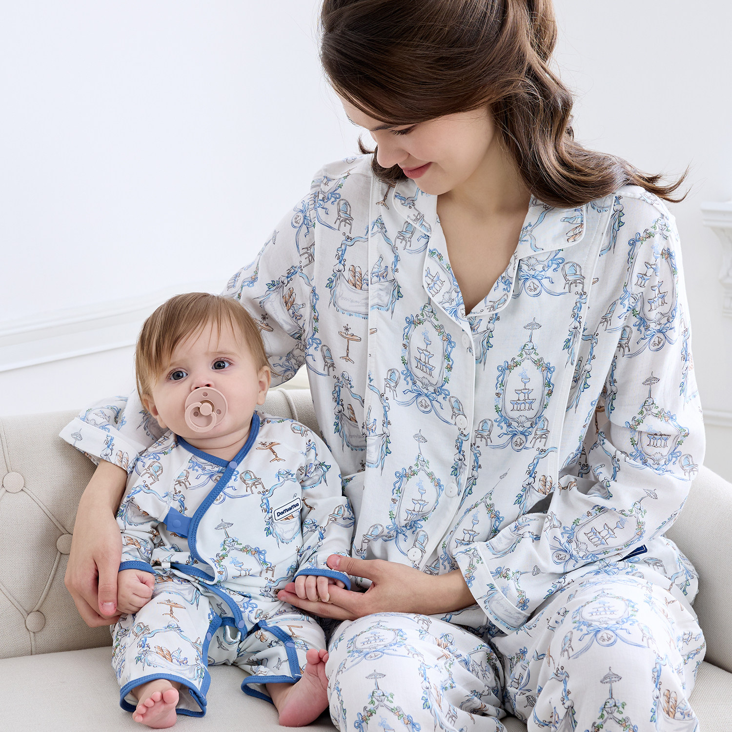 Domiamia纯棉亲子睡衣新生儿服饰月子服哺乳服男女宝宝衣服亲子装