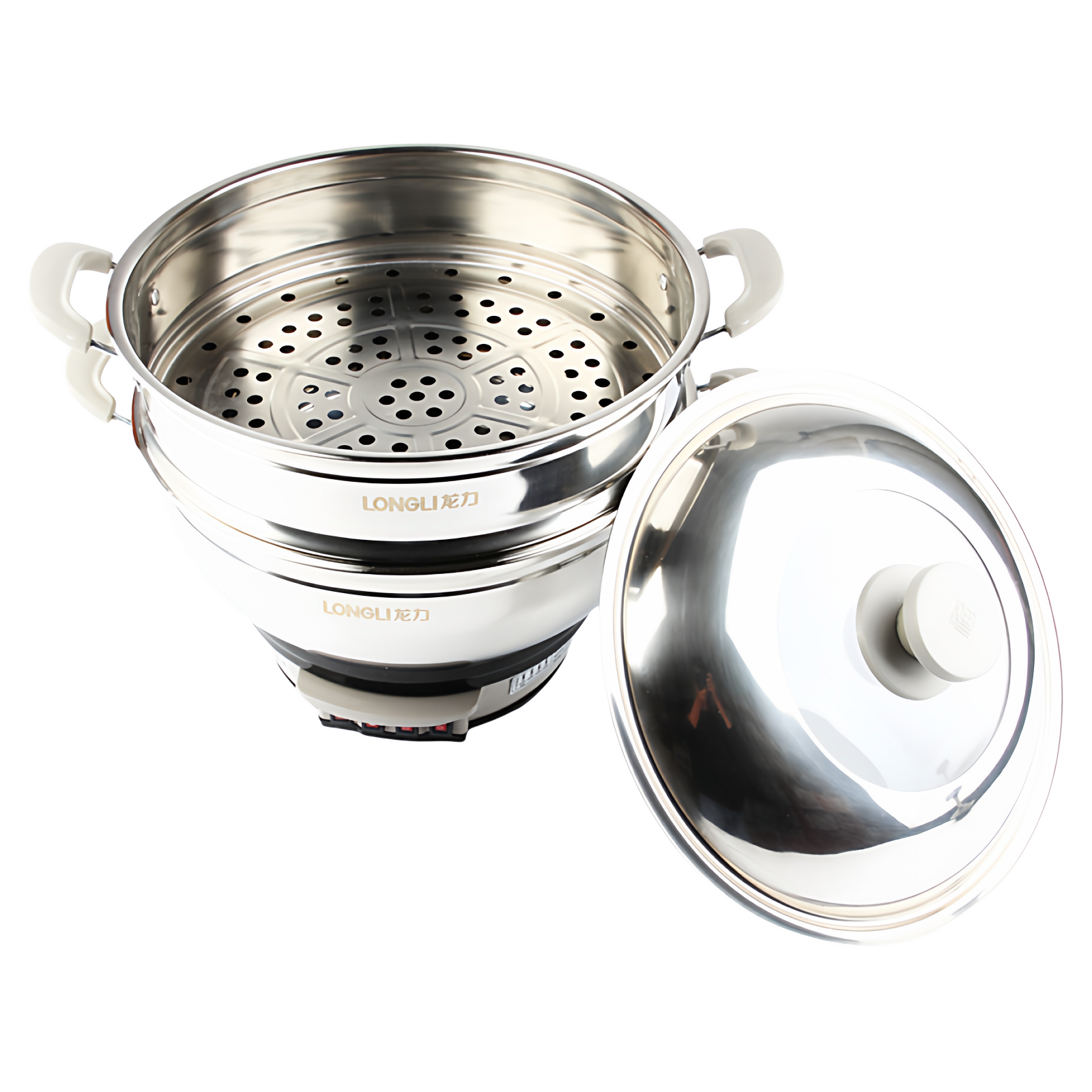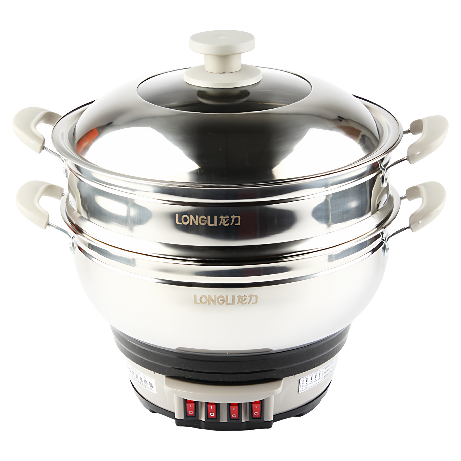 家用不锈钢多功能电火锅多层无涂层电炒锅电蒸锅电煮锅正品30CM
