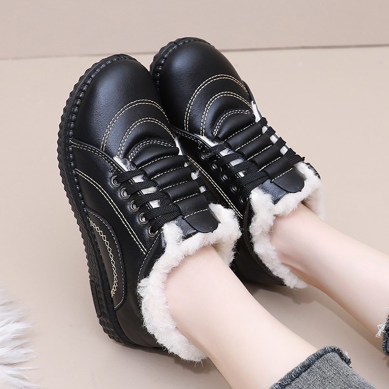 加绒加厚绵羊毛妈妈鞋防水防滑