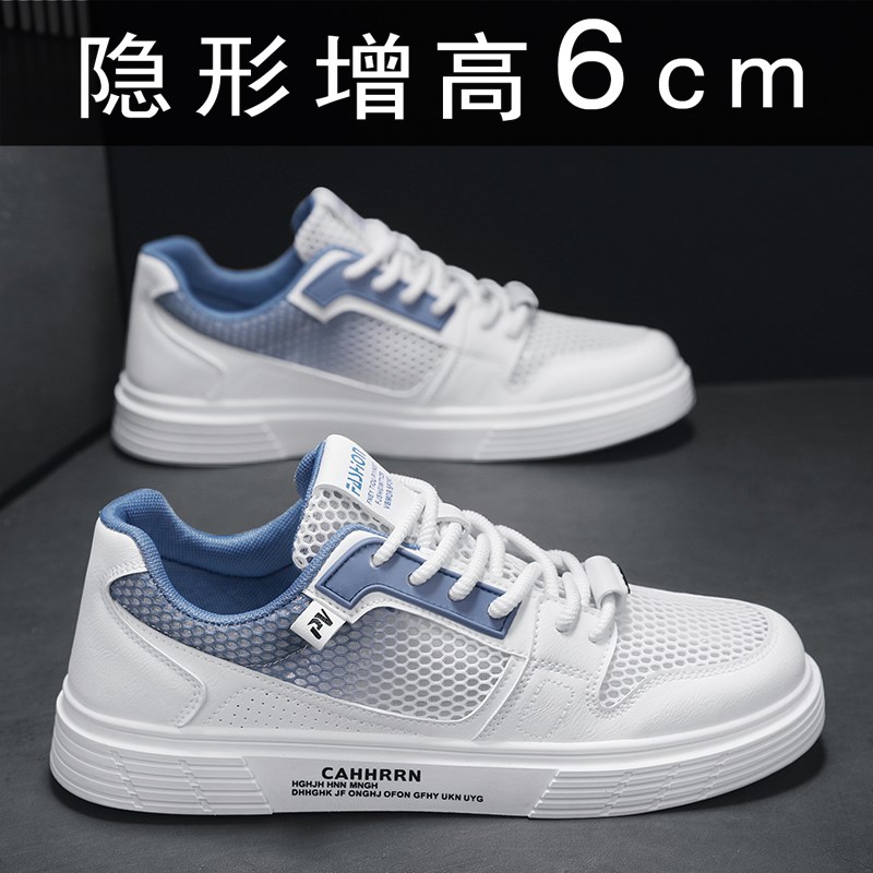夏季透气小白鞋内增高6CM男鞋简约网面镂空运动休闲鞋防臭板鞋潮