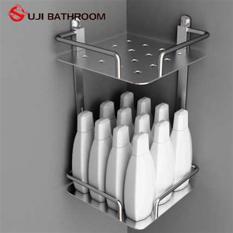 太空铝免打孔三角置物架卫生间壁挂浴室收纳架四方转角架厕所花架