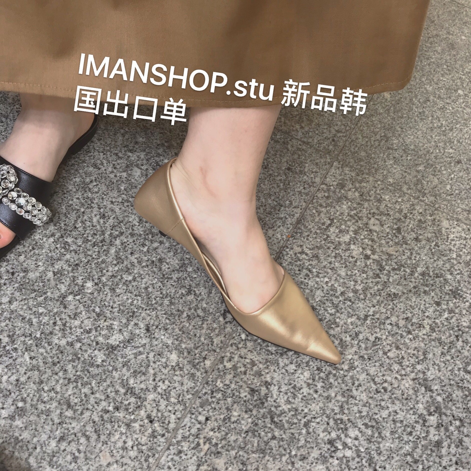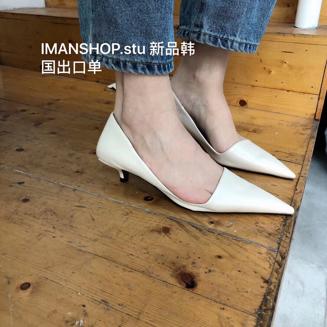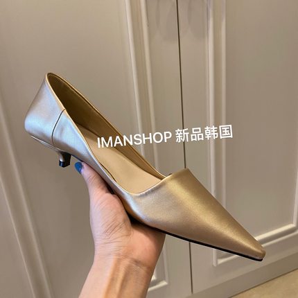 潮人穿搭 早春小众金色高跟鞋 2025工作女鞋 尖头浅口小猫跟单鞋