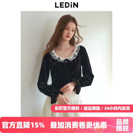 乐町法式丝绒雪纺衫2025年秋季新款蕾丝花边领设计宫廷风短款上衣