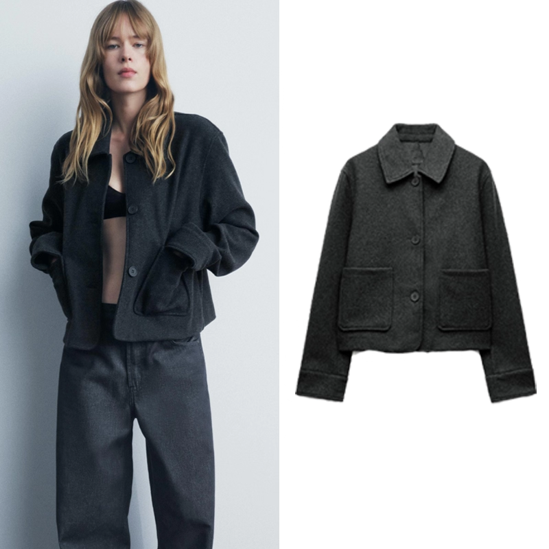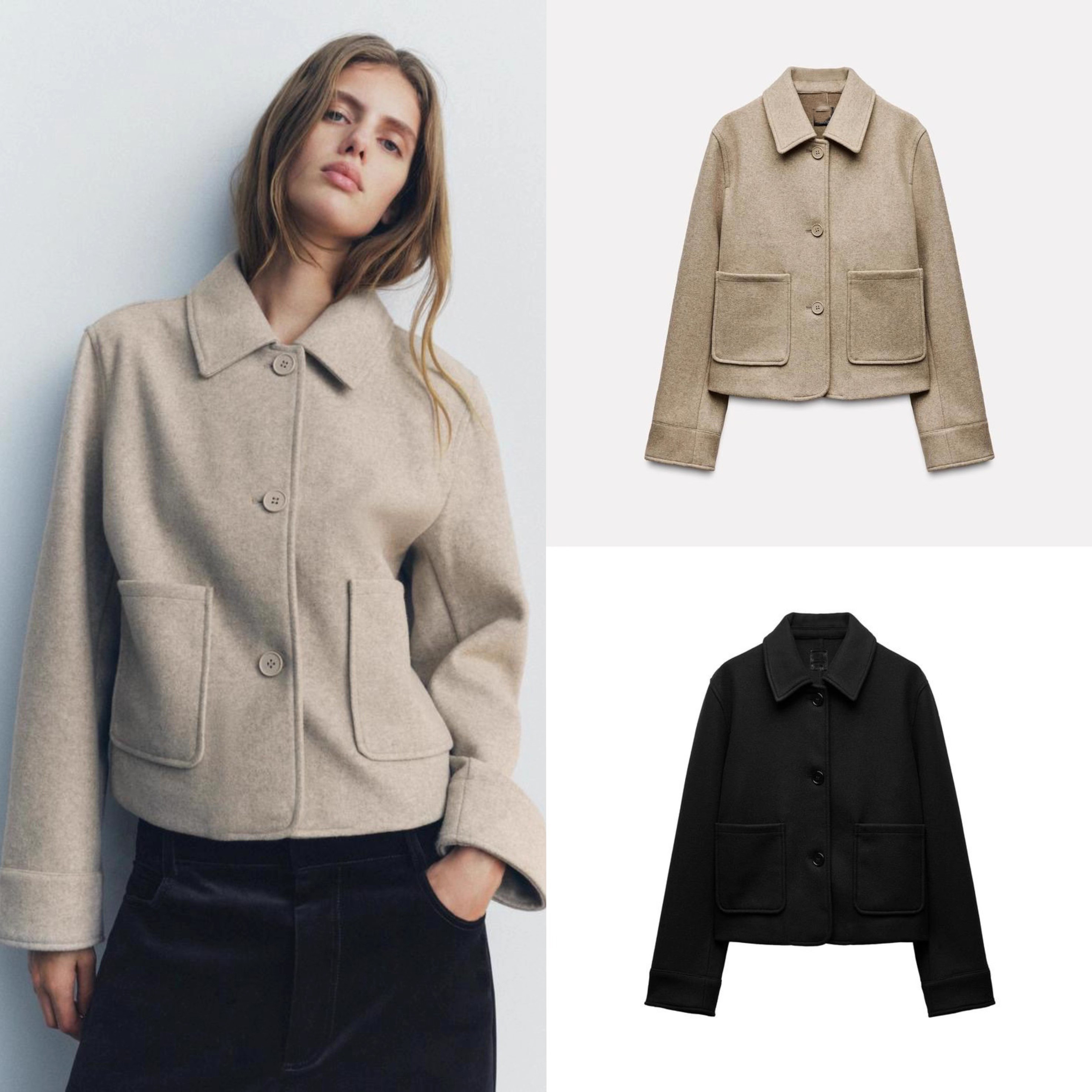 2025 春季新品 女装 多色选口袋饰软质舒适翻领外套毛呢 5070469