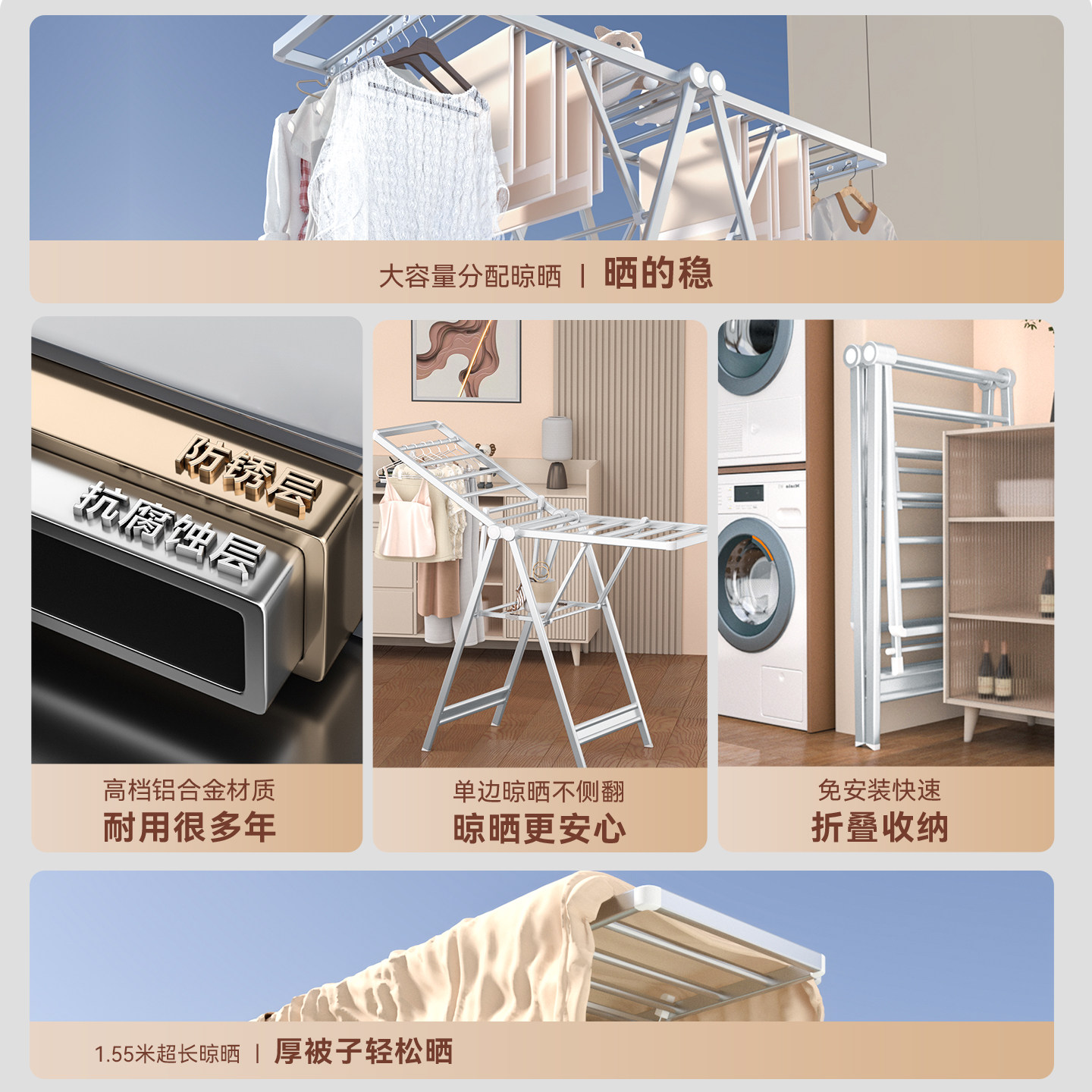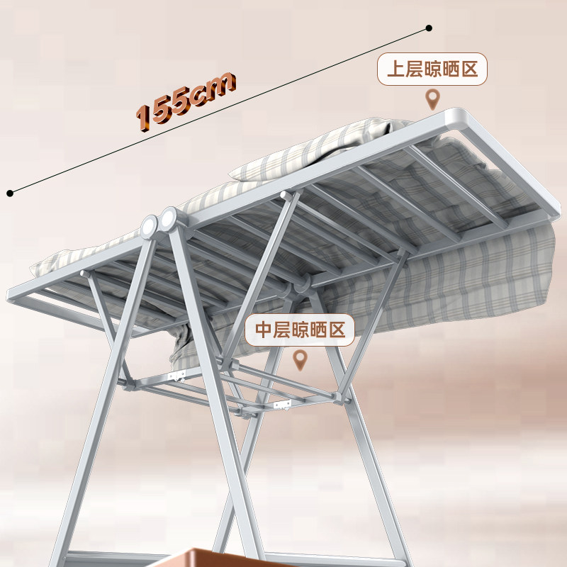 好太太落地晾衣架铝合金可折叠可移动多层晾晒家用晾衣架
