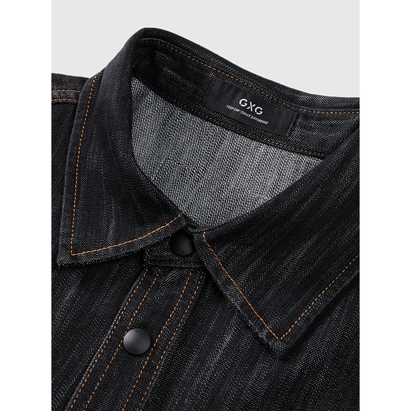 GXG男装 黑色特殊水洗纹理感复古时尚牛仔衬衫外套 25年春季新品