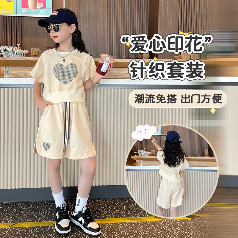 女童夏装套装2025新款中大儿童短袖短裤衣服潮流休闲棉童装两件套