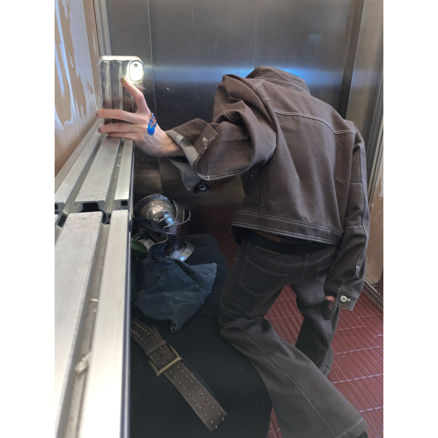 阿荒与阿卤*美式复古水洗原牛做旧男立领秋季新款牛仔外套男休闲