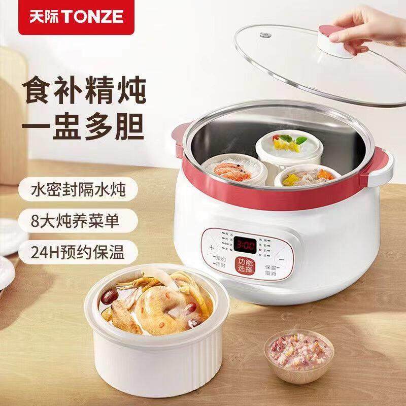 天际不锈钢隔水炖电炖盅陶瓷电炖锅全自动煮粥煲汤锅一锅三胆1.2L