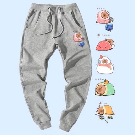 卡皮巴拉可爱水豚卡通周边男女秋冬情侣休闲百搭定制束口卫裤长裤