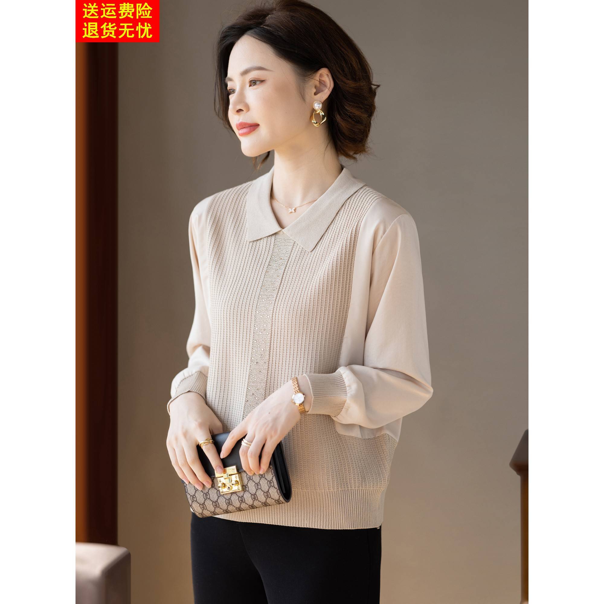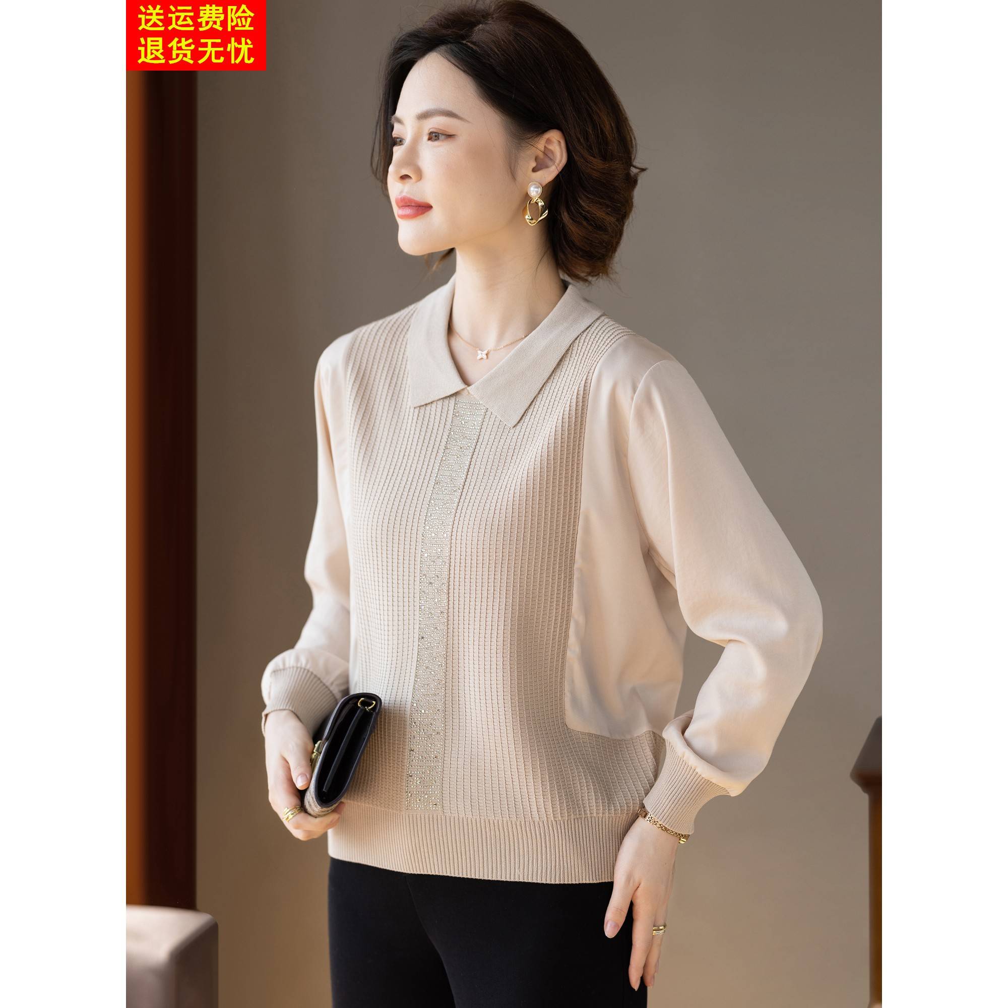 中年女装秋装妈妈春秋上衣服洋气时尚针织t恤衫中老年女春秋套装