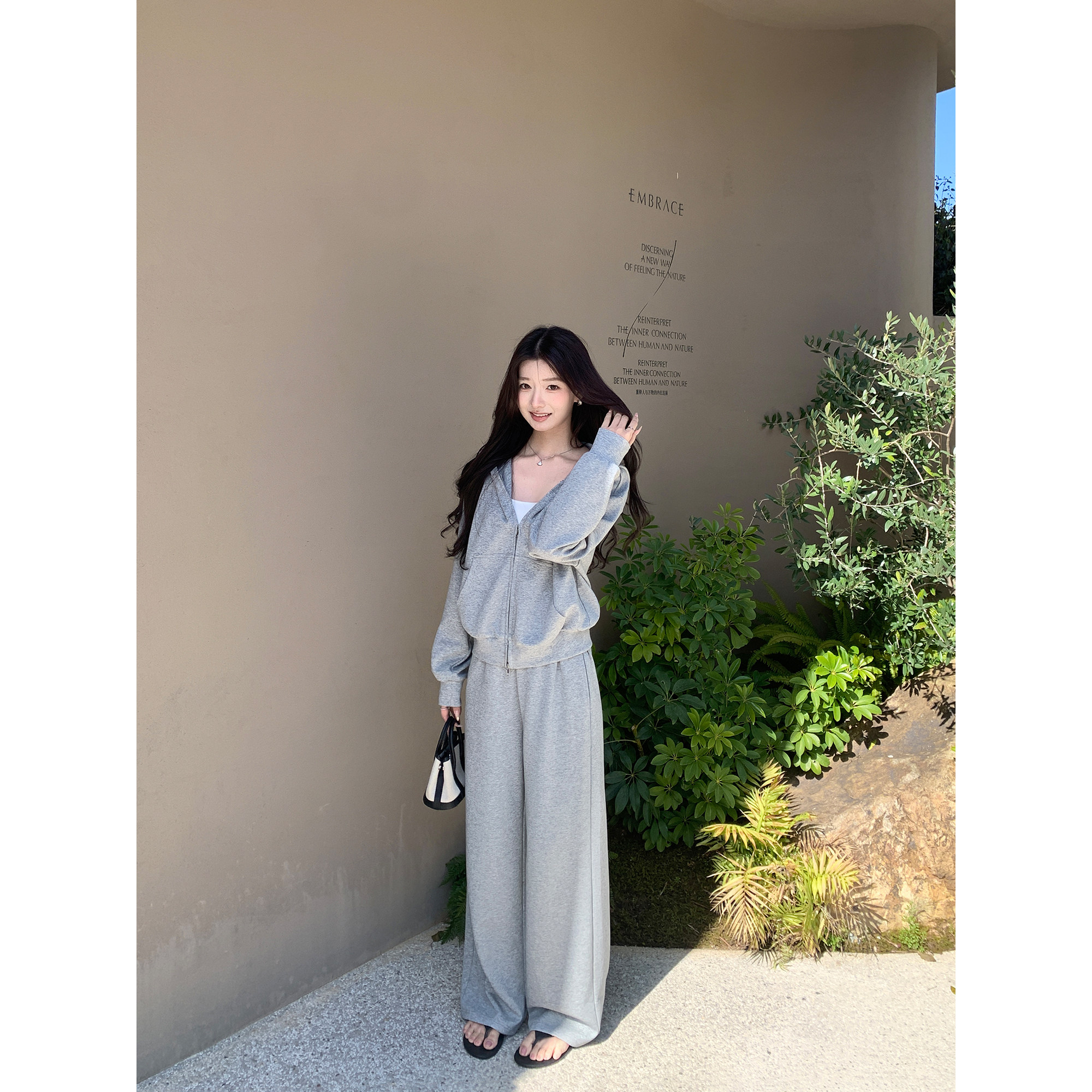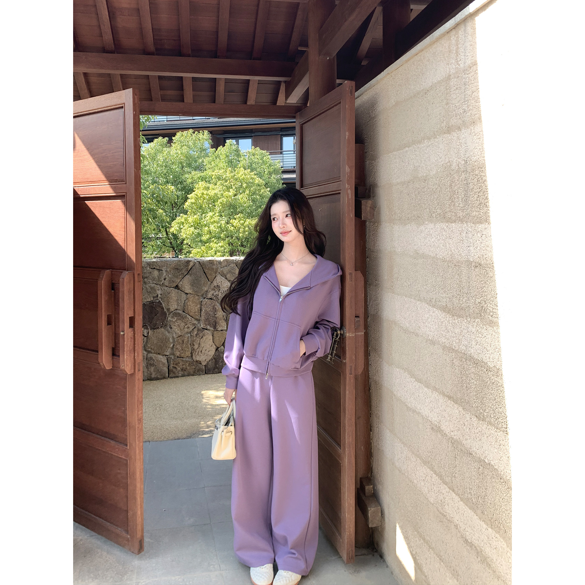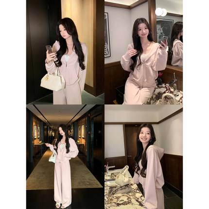 1XTWO 慵懒粉调 宽松短款连帽运动卫衣套装女休闲外套阔腿卫裤