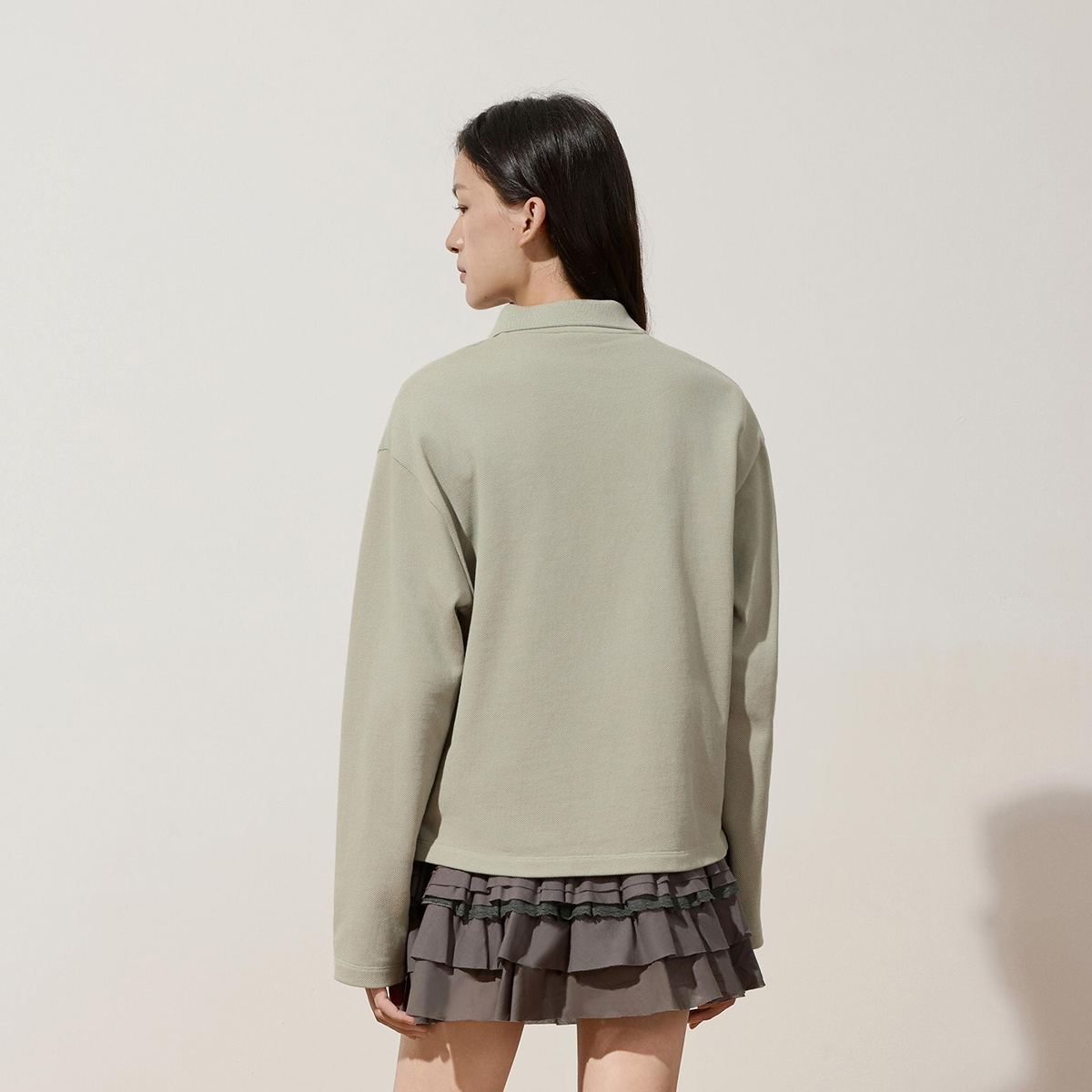 OCHIRLY欧时力 100%棉Polo领长袖T恤女上衣绣花气质秋冬新品
