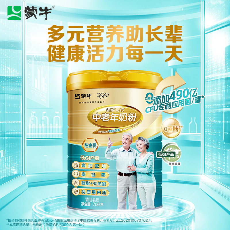 蒙牛铂金装中老年奶粉700g*2老年人高钙营养牛奶粉送礼官方旗舰店