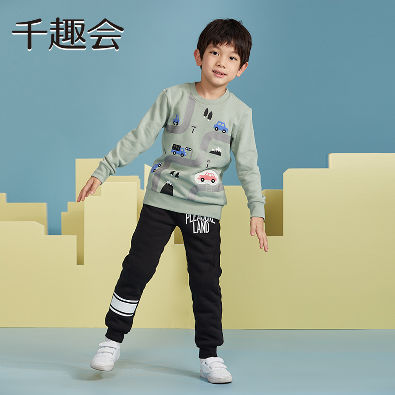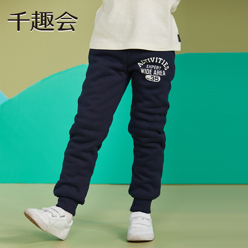 千趣会童装冬季男童运动裤仿羊羔绒儿童加厚长裤束脚防风