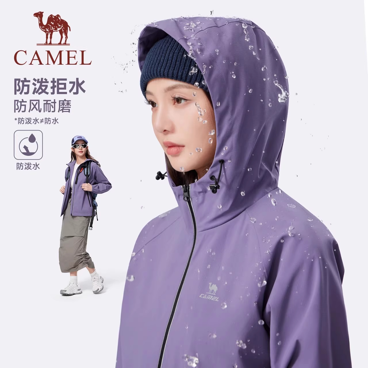 骆驼女装运动风衣25秋冬新款梭织连帽外套防泼水夹克简约时尚百搭