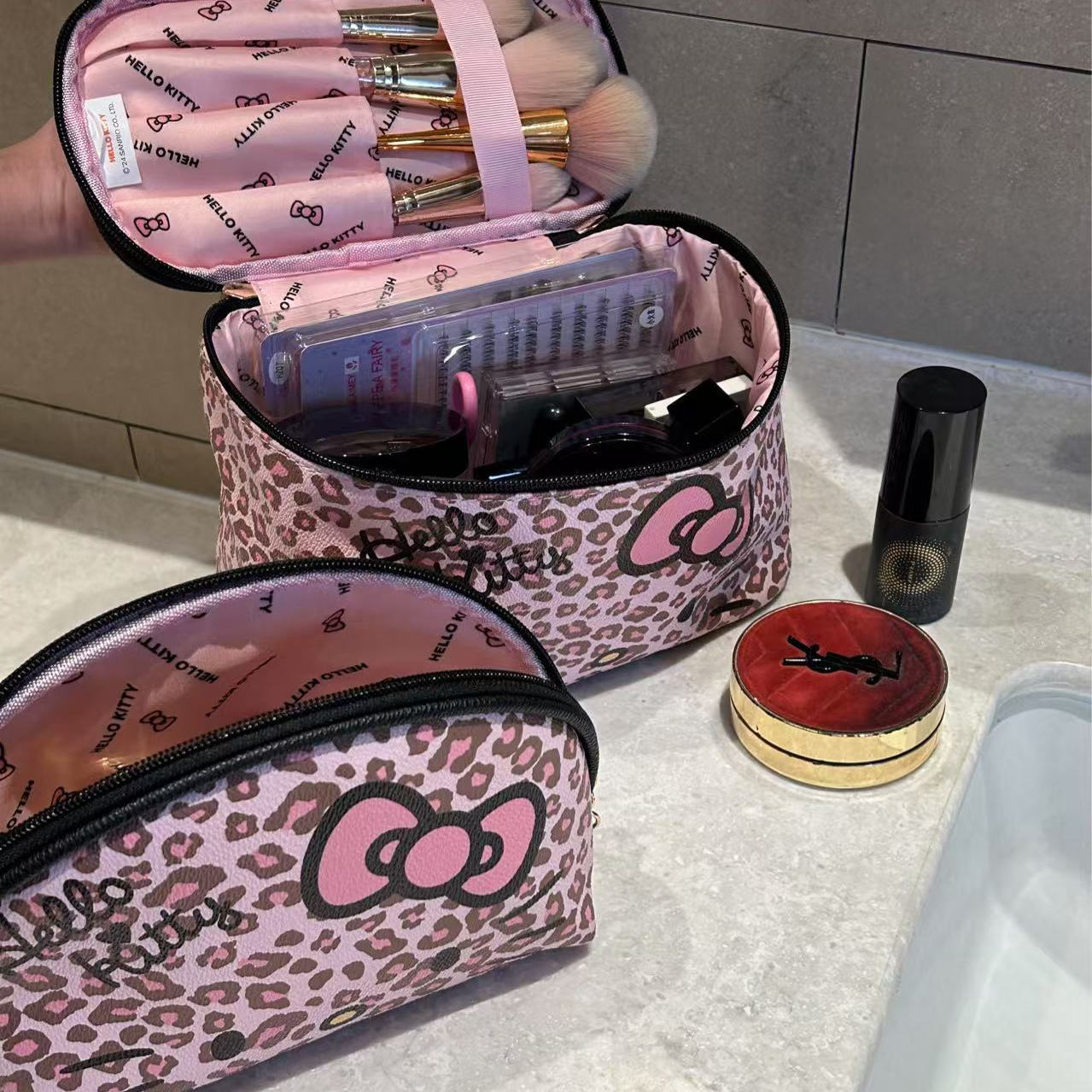 三丽鸥正版HelloKitty凯蒂猫化妆包豹纹大容量便携新款收纳洗漱包