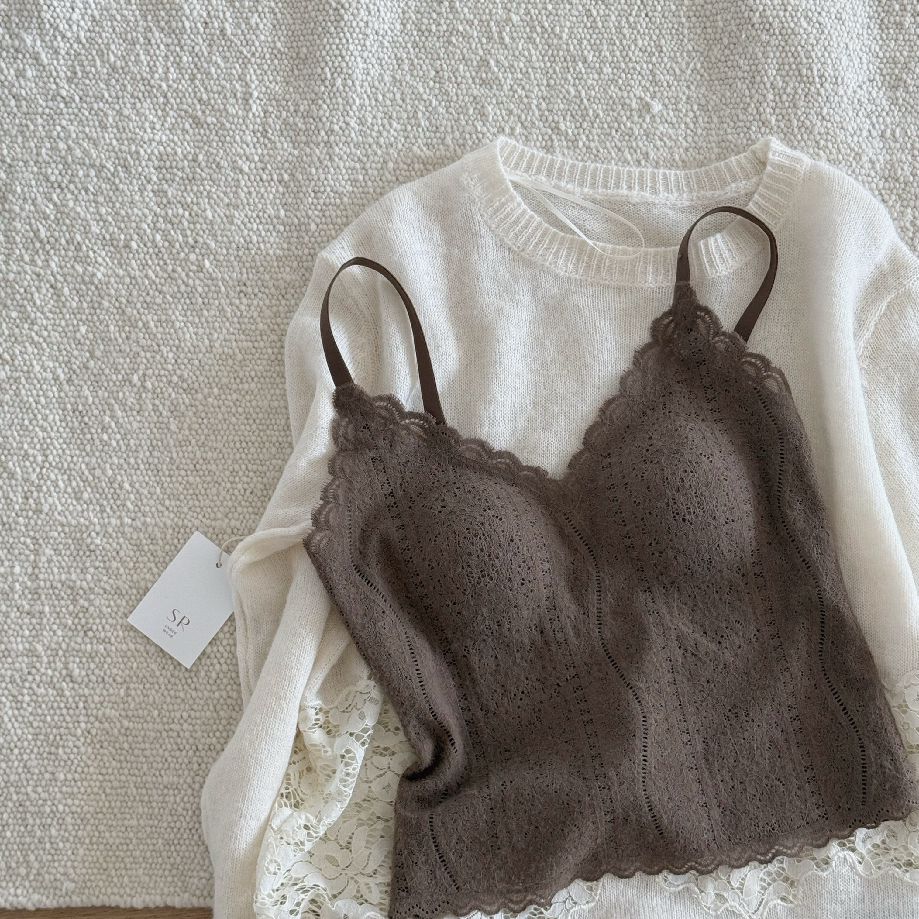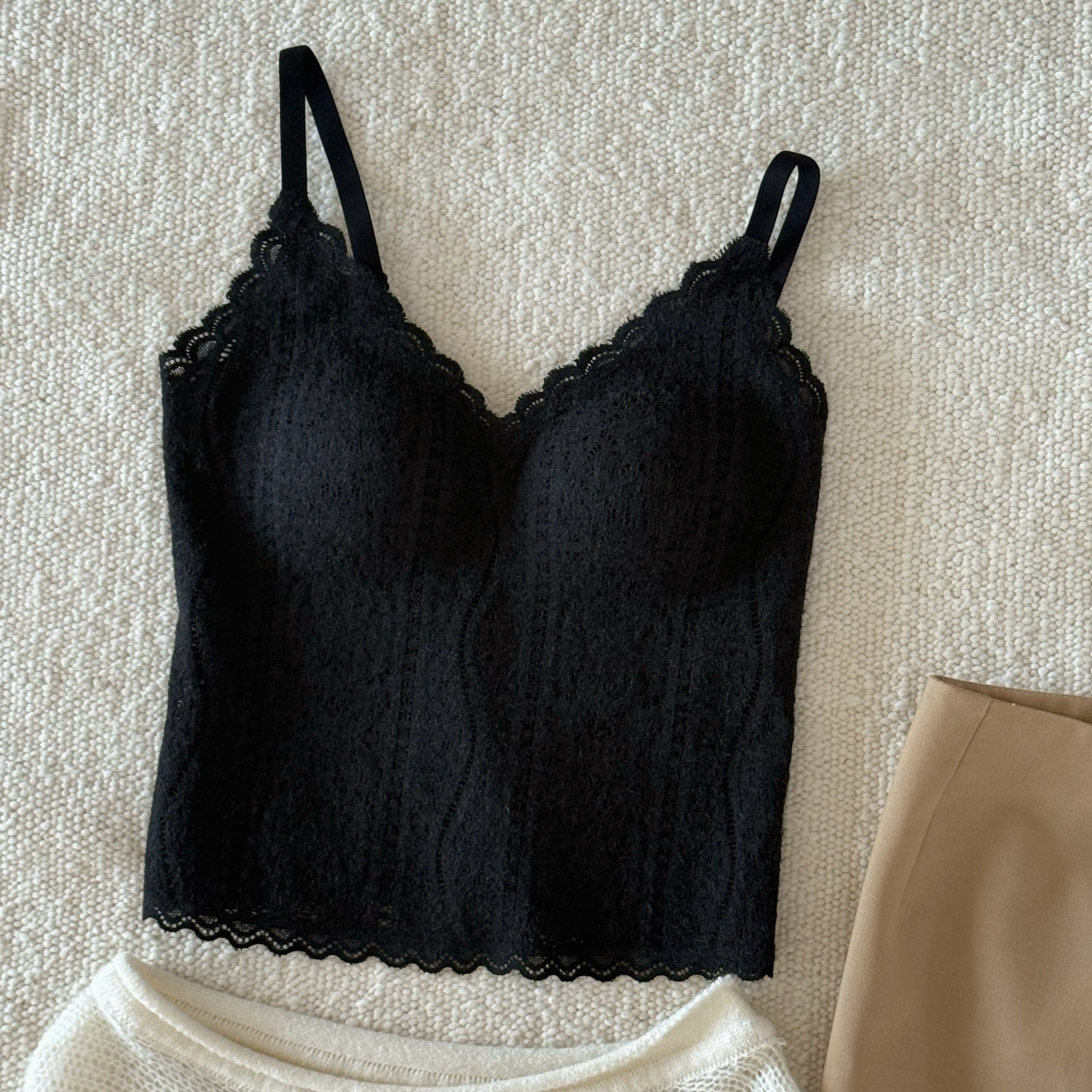sirao 法式保暖背心女蕾丝带胸垫一体冬季内搭外穿贴身女士打底衫