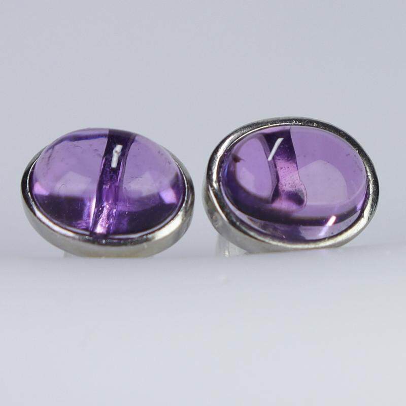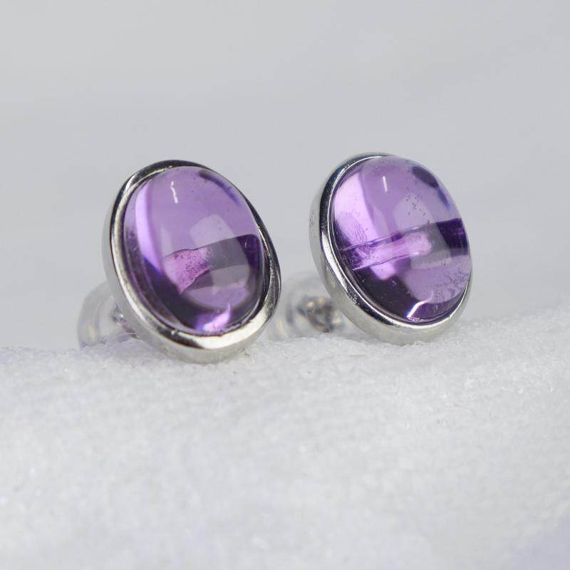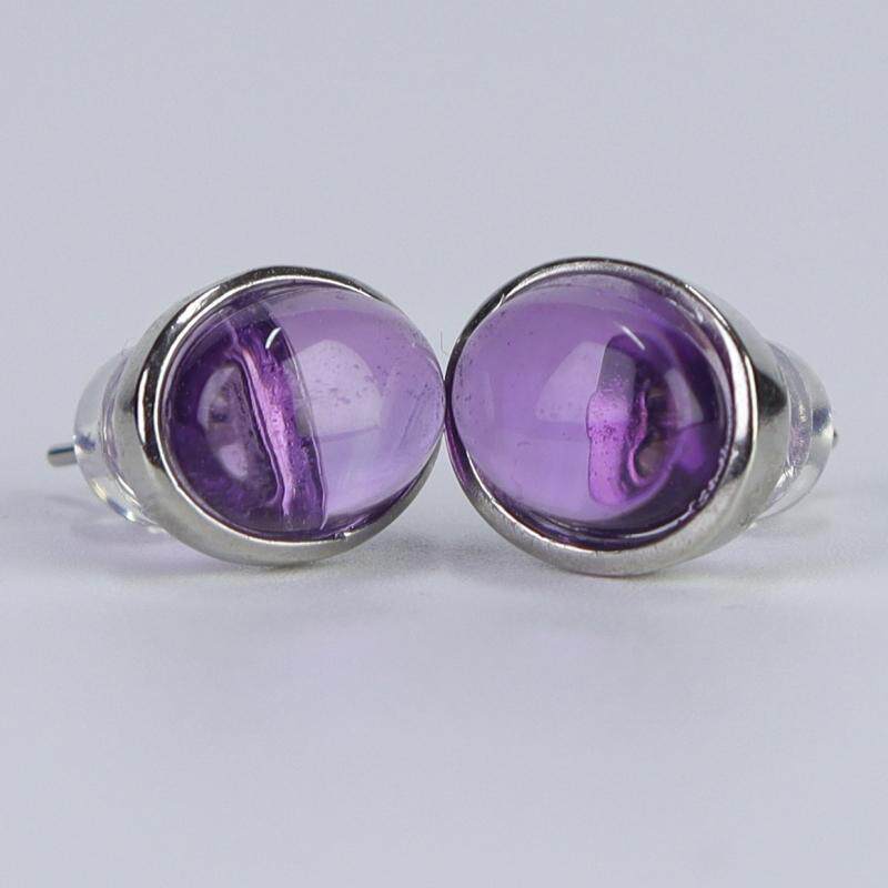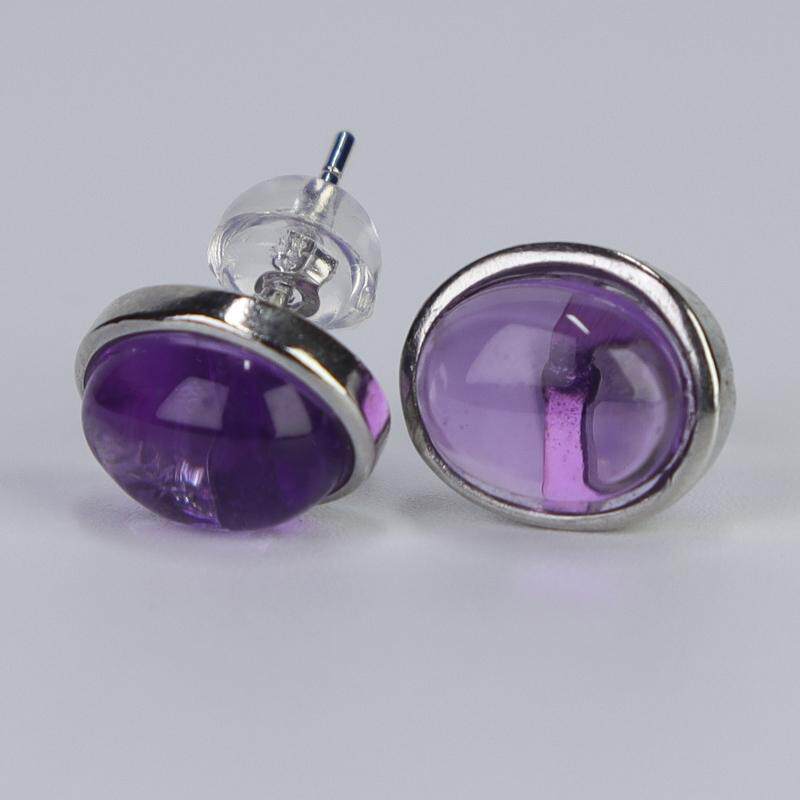 天然紫水晶耳钉S925银蛋面耳饰