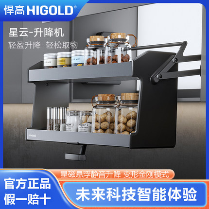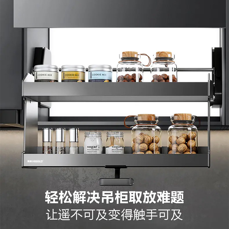 HIGOLD/悍高阻尼升降机厨房吊柜拉篮调味瓶拉篮高柜收纳多功能