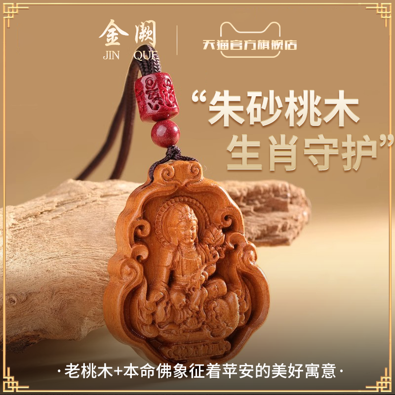 本命年天然真桃木吊坠普贤菩萨平安本命佛生肖挂件正品官方旗舰店