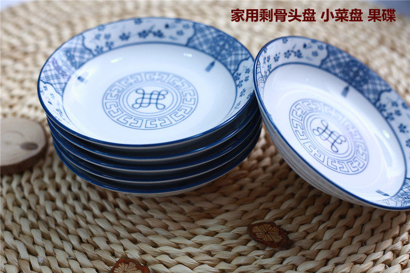 青花瓷陶瓷6英寸小盘子6个装菜盘子深盘果盘骨盘圆盘家用餐具套装