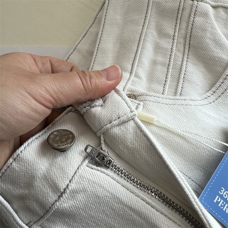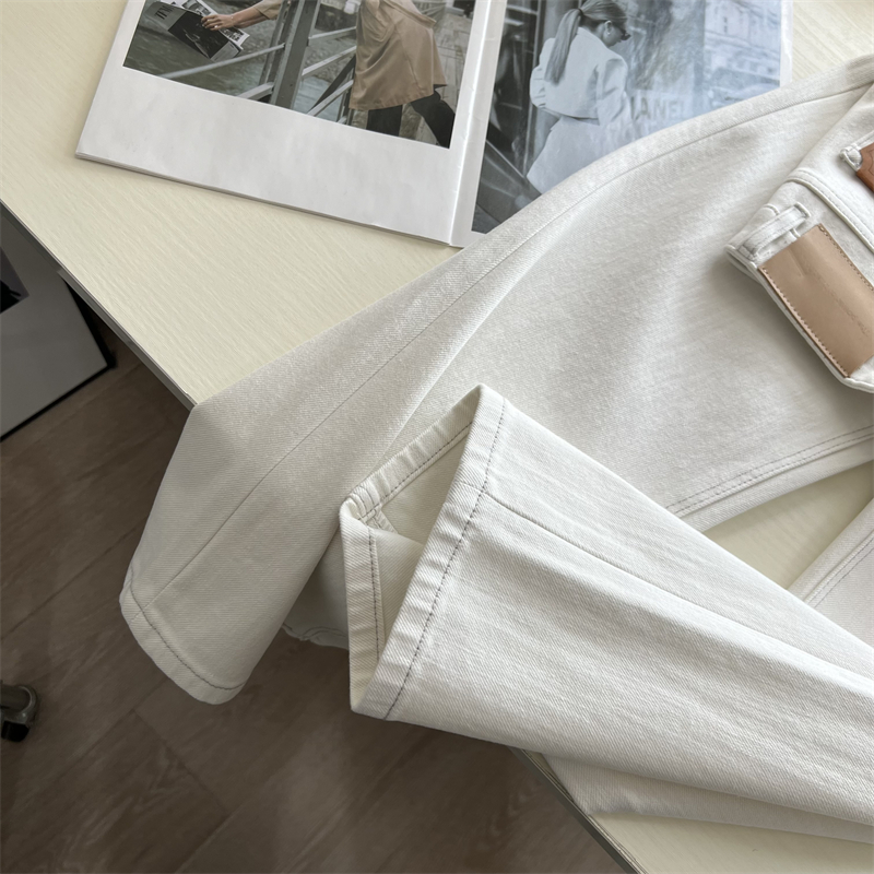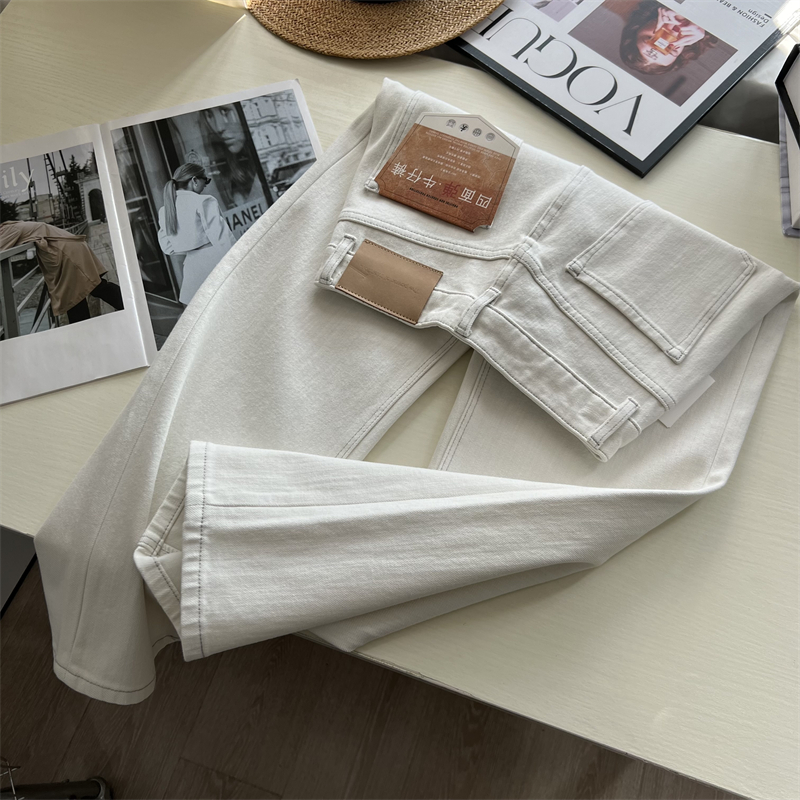 王炸裤型~!巨显瘦米白四面弹高腰法棍裤 春秋宽松直筒九分牛仔裤