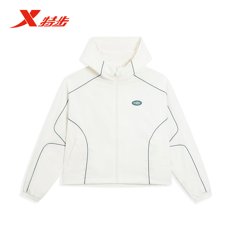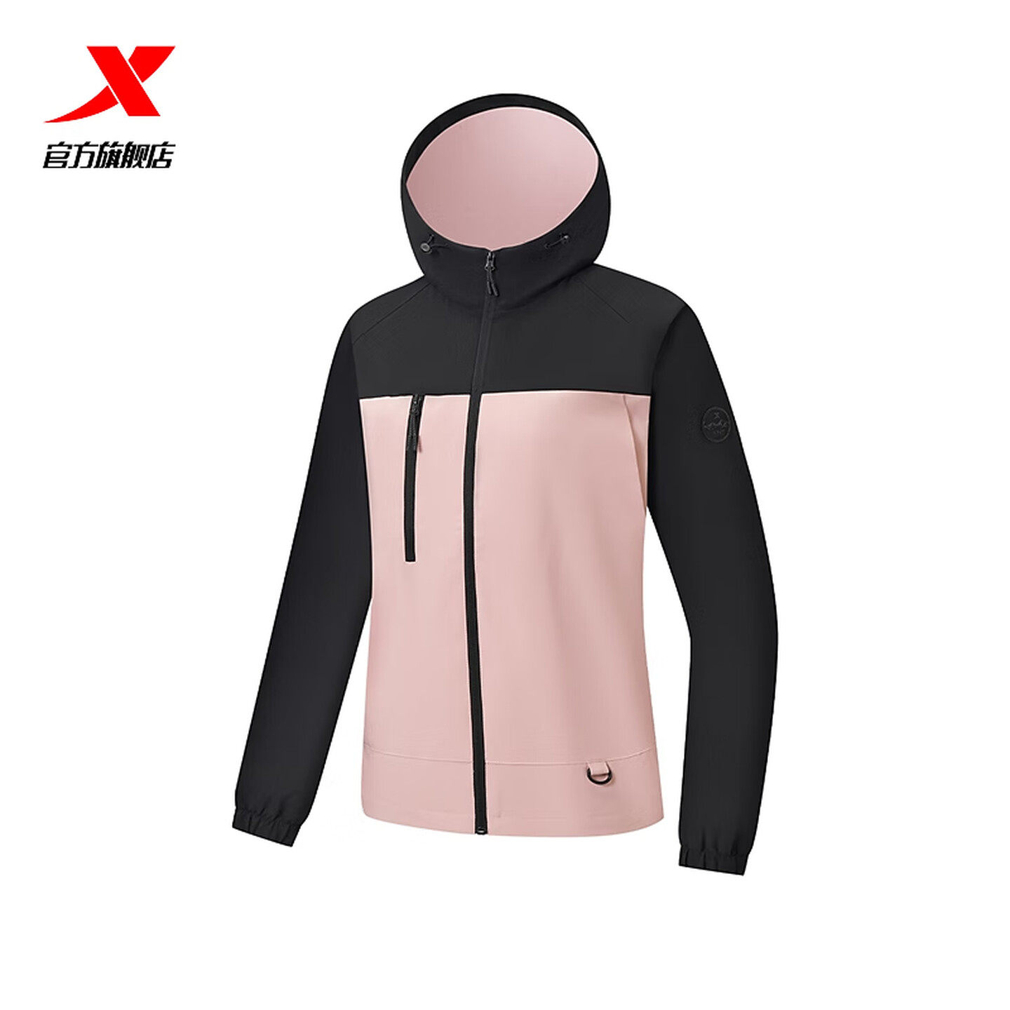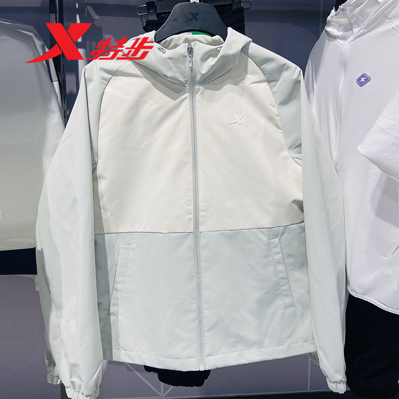 特步女款外套春秋季新款女士双层风衣梭织连帽跑步运动服上衣