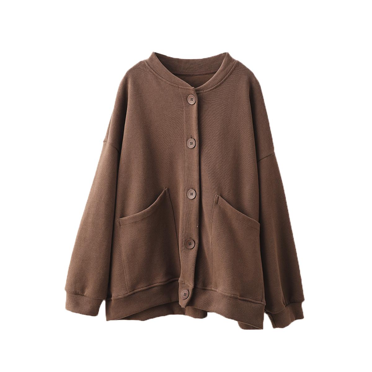 园园美衣秋款复古高密针织棉外套女休闲大口袋螺纹立领棒球服外搭