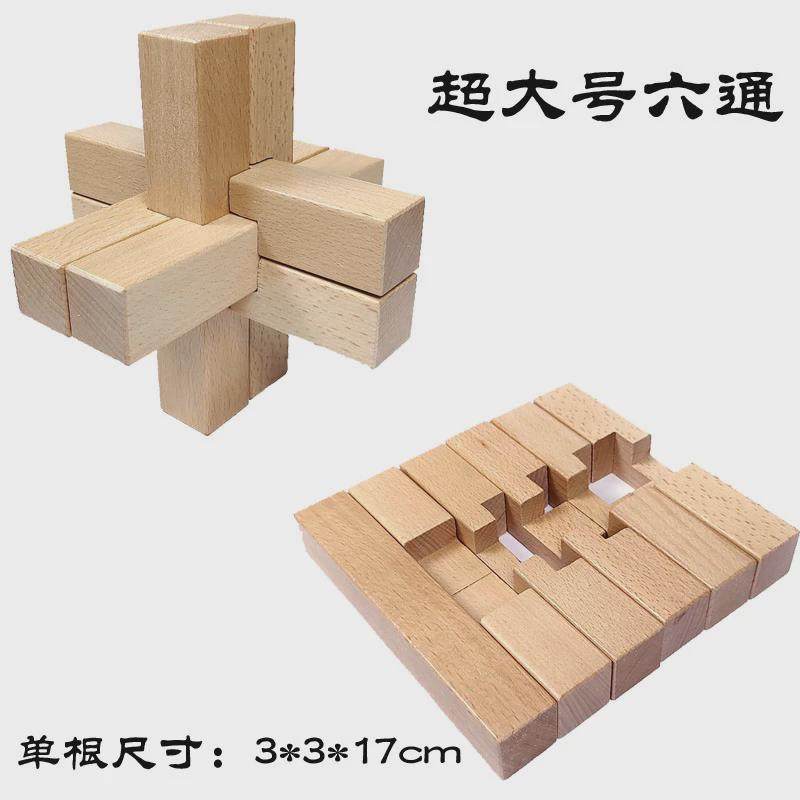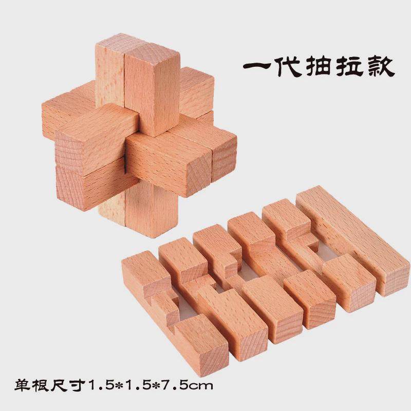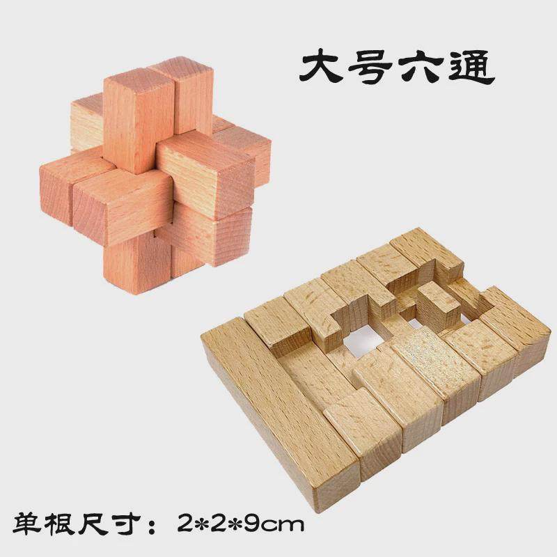 六一儿童益智玩具鲁班锁孔明锁榉木六通六根锁A款一代B款二代解锁