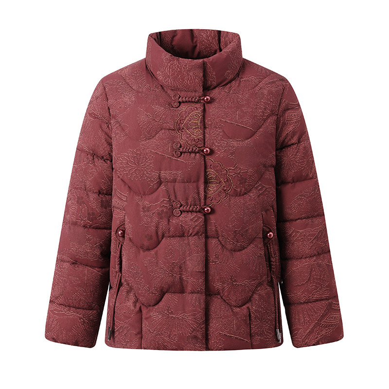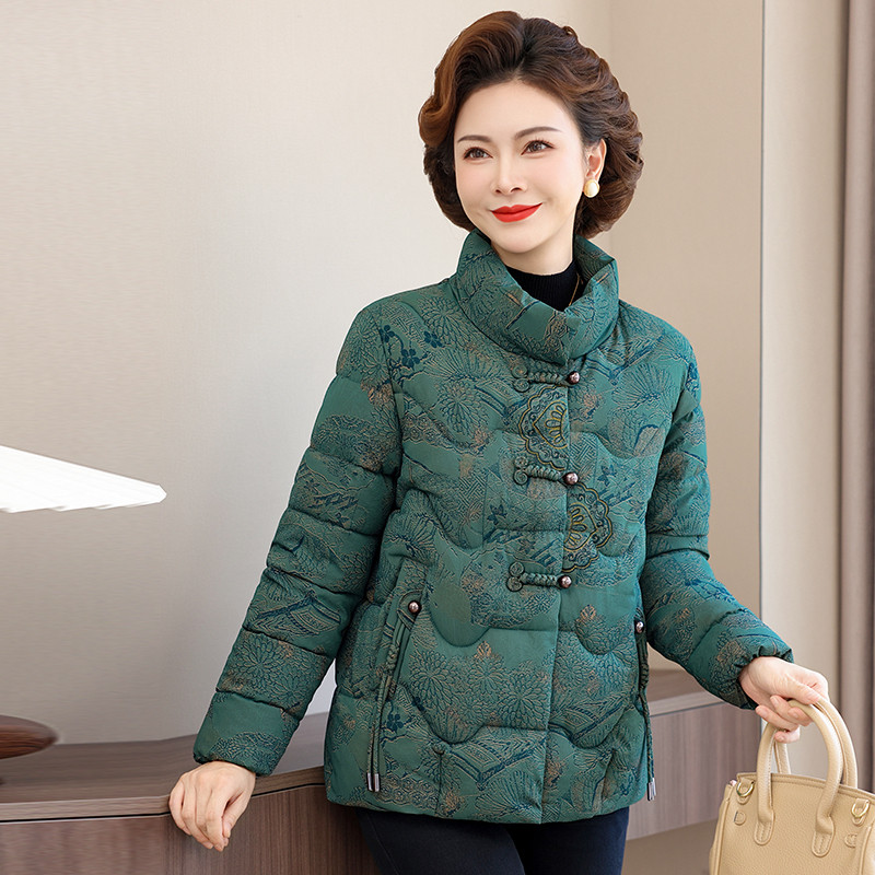 妈妈洋气棉衣女冬季加厚外套中老年女装立领中式羽绒棉服保暖棉袄