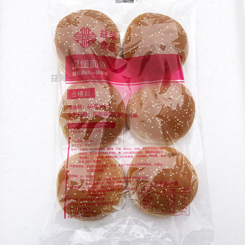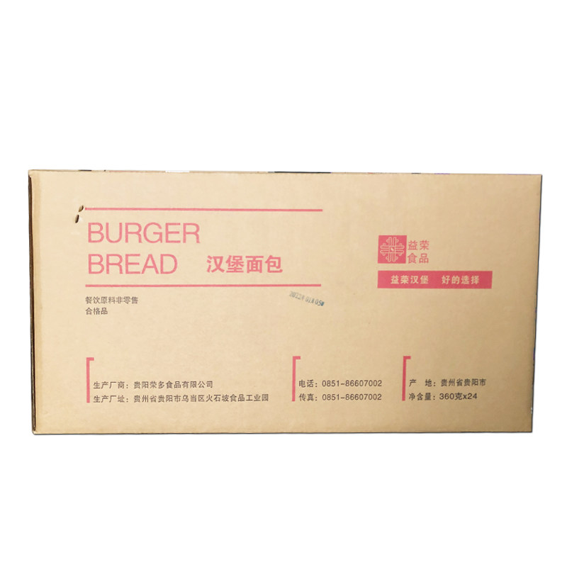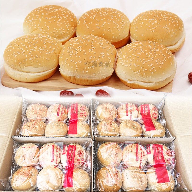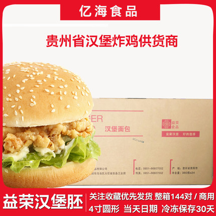 贵州益荣面包汉堡胚商用整箱144对圆形汉堡包半成品鸡排汉堡店