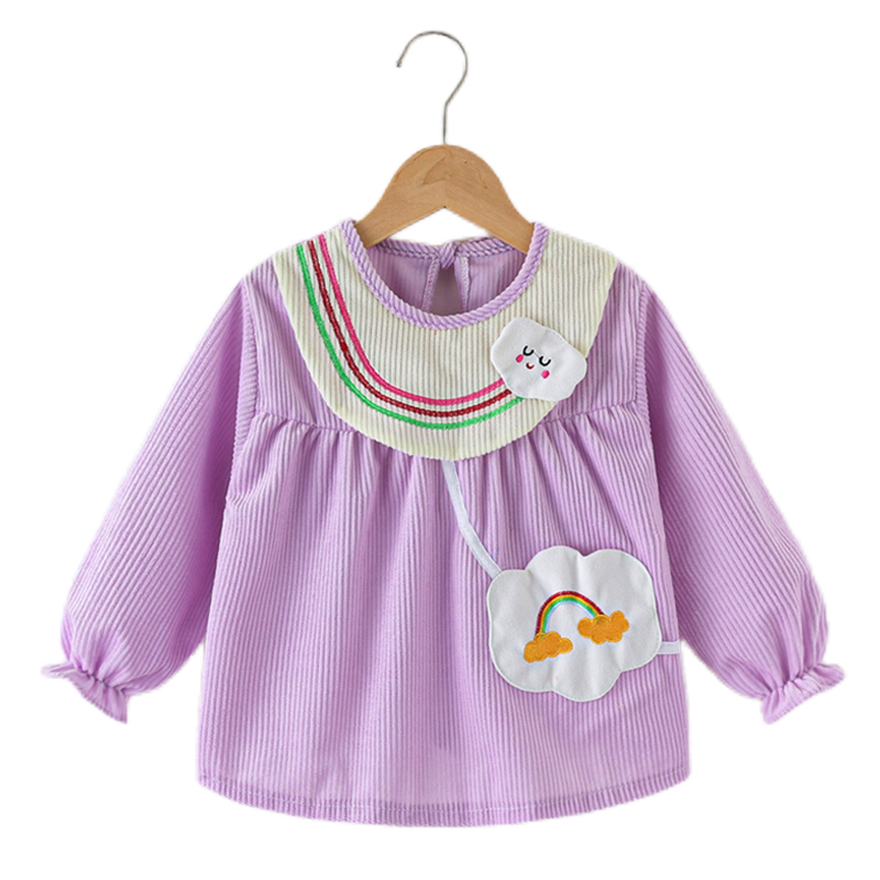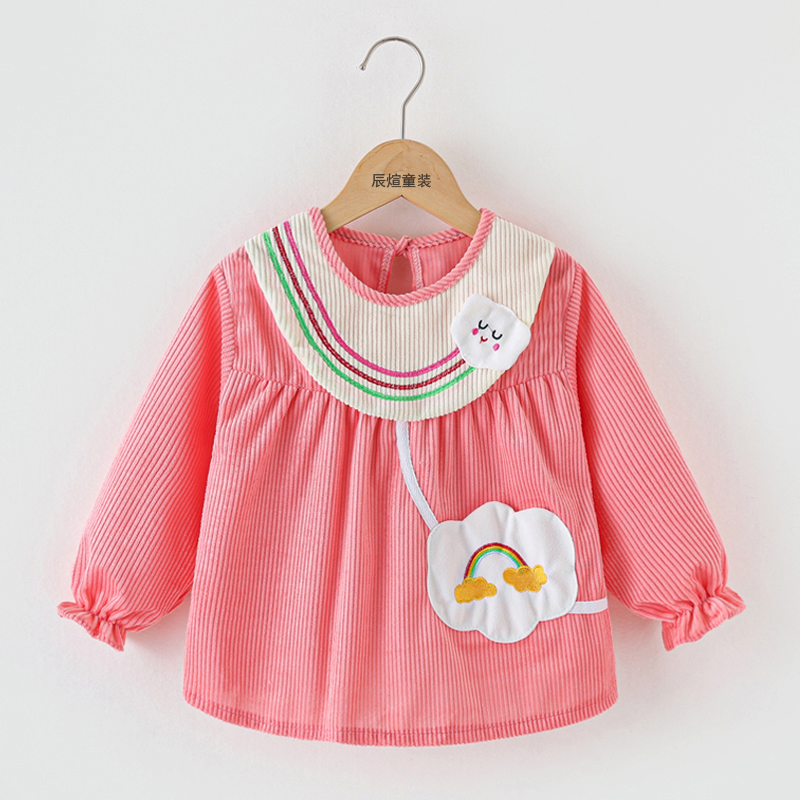 罩衣女宝宝灯芯绒婴儿吃饭围兜秋冬防水儿童围裙长袖洋气公主倒褂