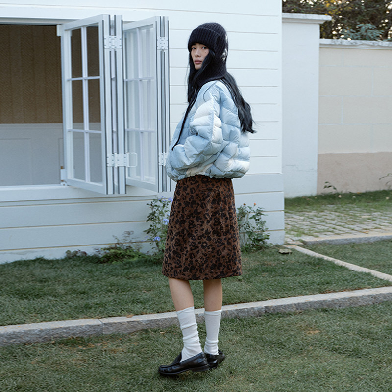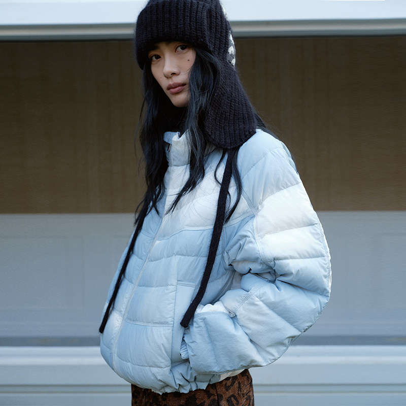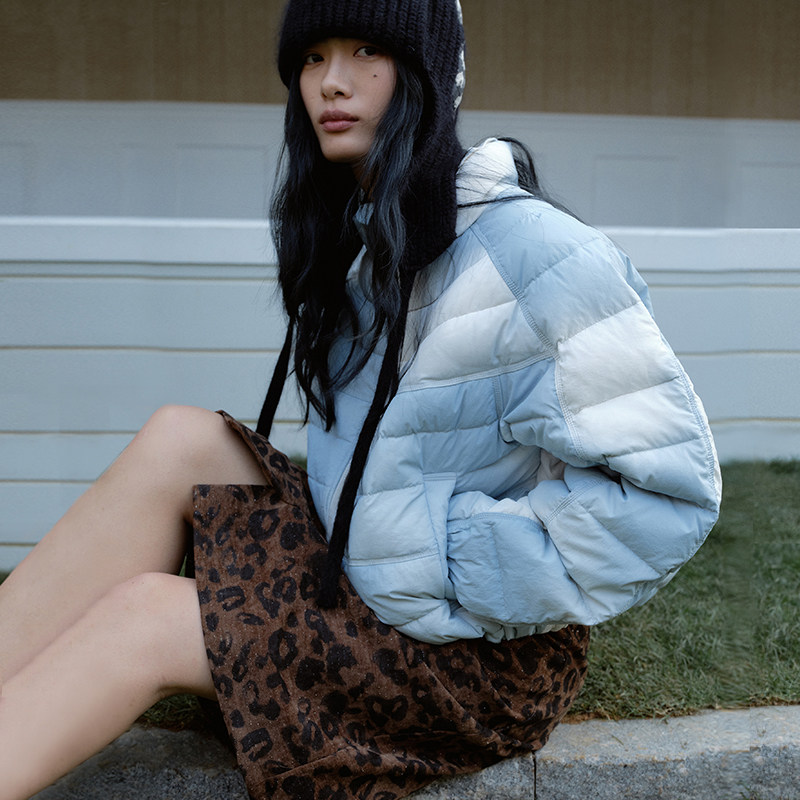 COINROVA晕染蓝90白鹅绒排骨服短款羽绒服保暖外套