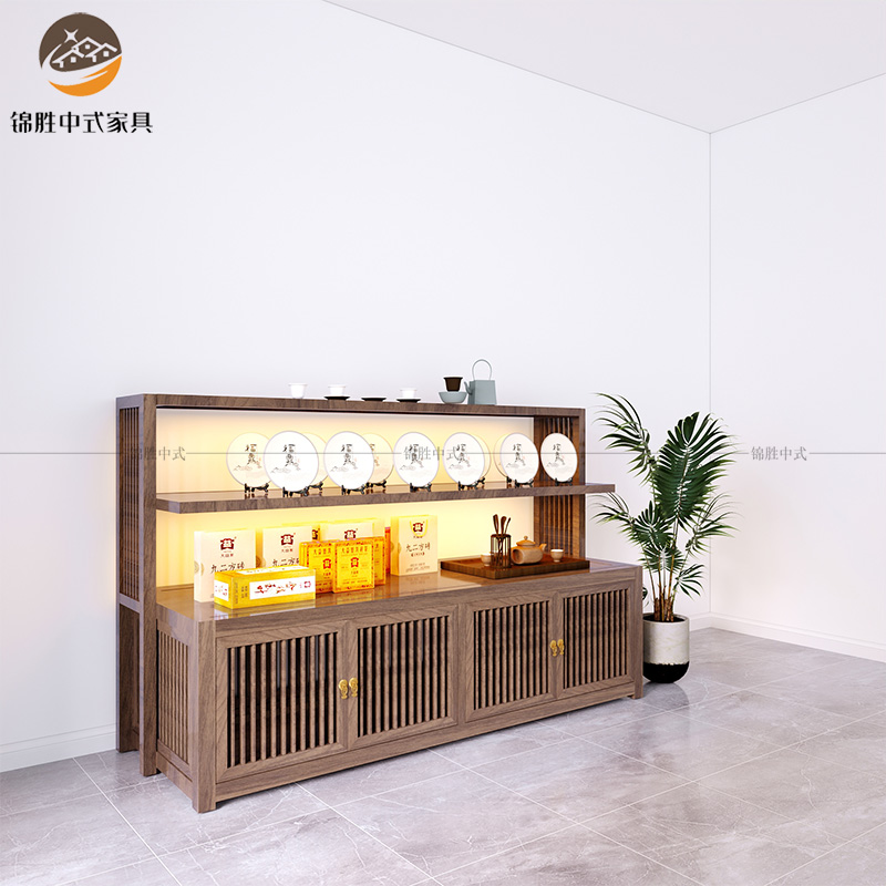 新中式茶叶中岛柜茶盘中岛台茶具展示架实木展厅流水台禅意陈列柜