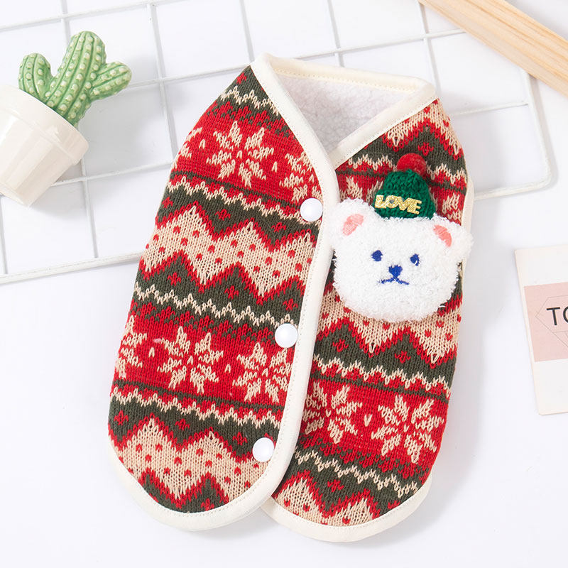 宠物狗狗衣服圣诞小熊针织衫秋冬季保暖加厚喜庆泰迪比熊小猫马甲