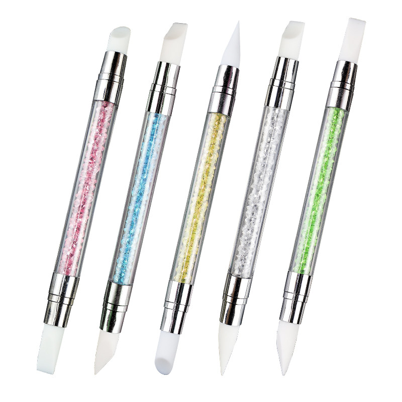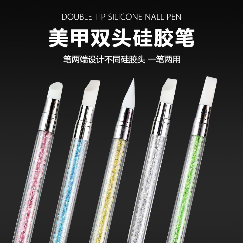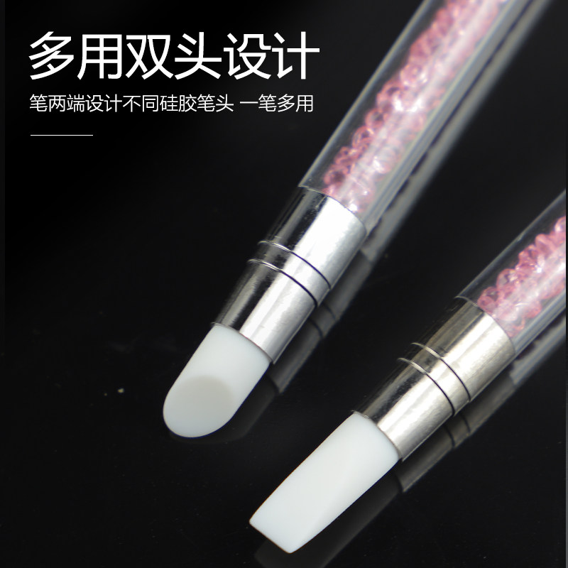 美甲双头硅胶笔多功能压花涂蹭魔镜粉雕花调胶棒贴纸按压带钻笔杆