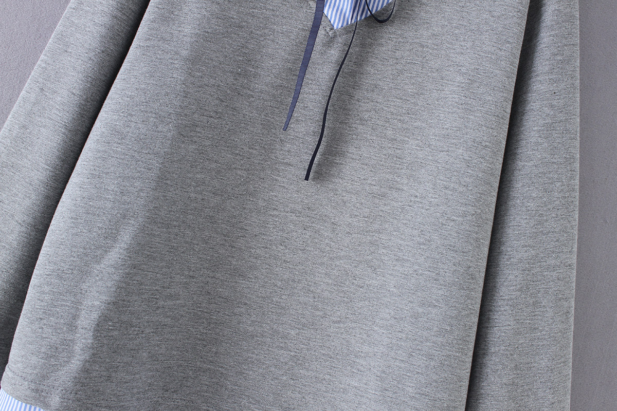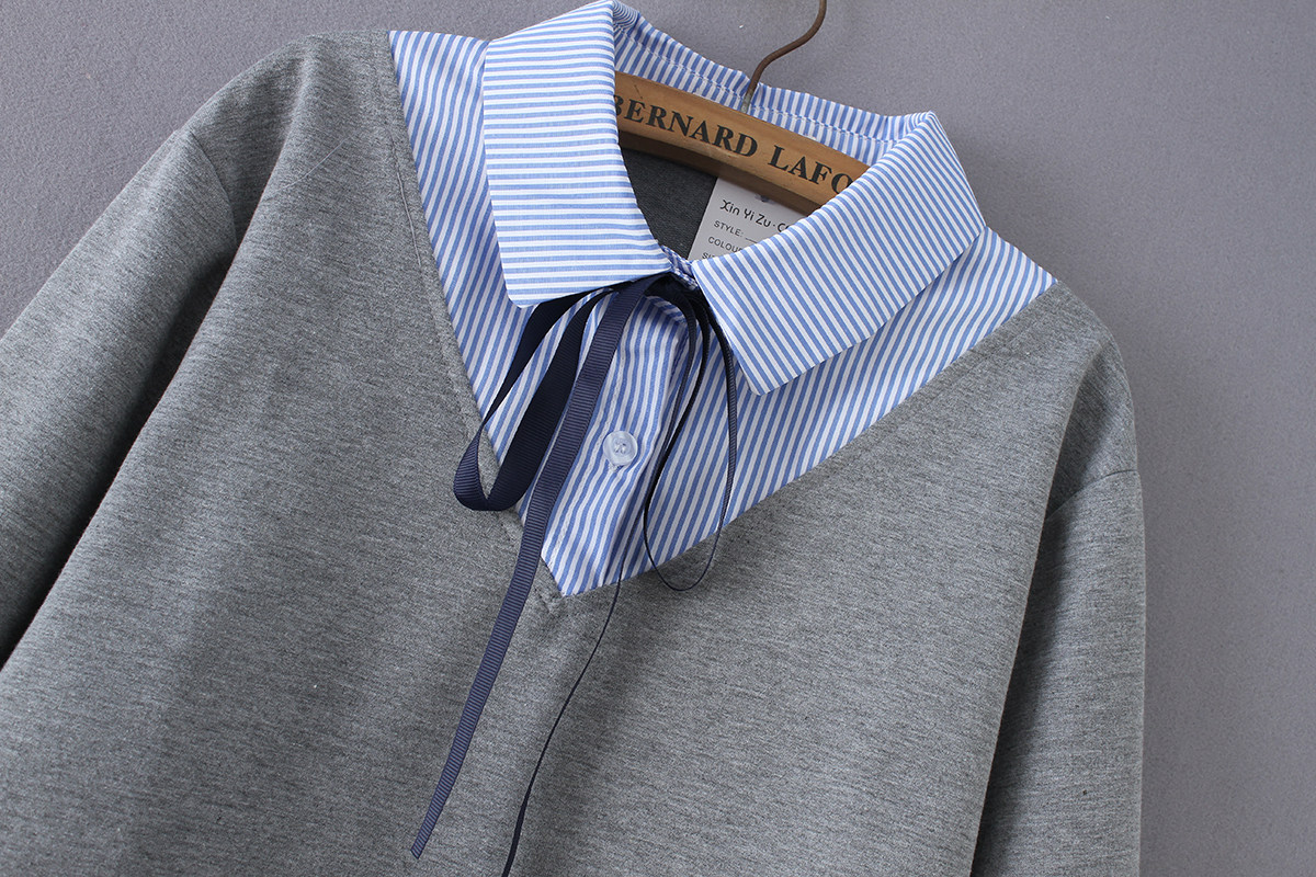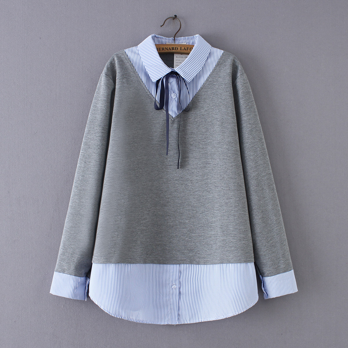 加大码胖MM条纹丝带两件打底衬衫