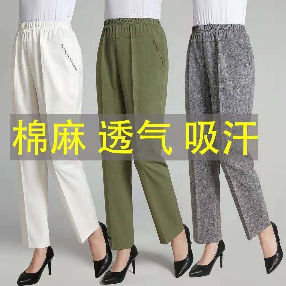 妈妈裤女薄款棉麻春夏季高腰宽松直筒休闲弹力显瘦女裤中年裤子女