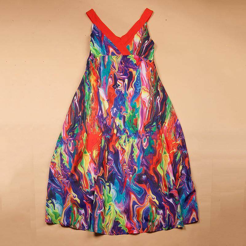 香港代购汤唯明星同款连衣裙海边度假沙滩裙波西米亚V领大码长裙