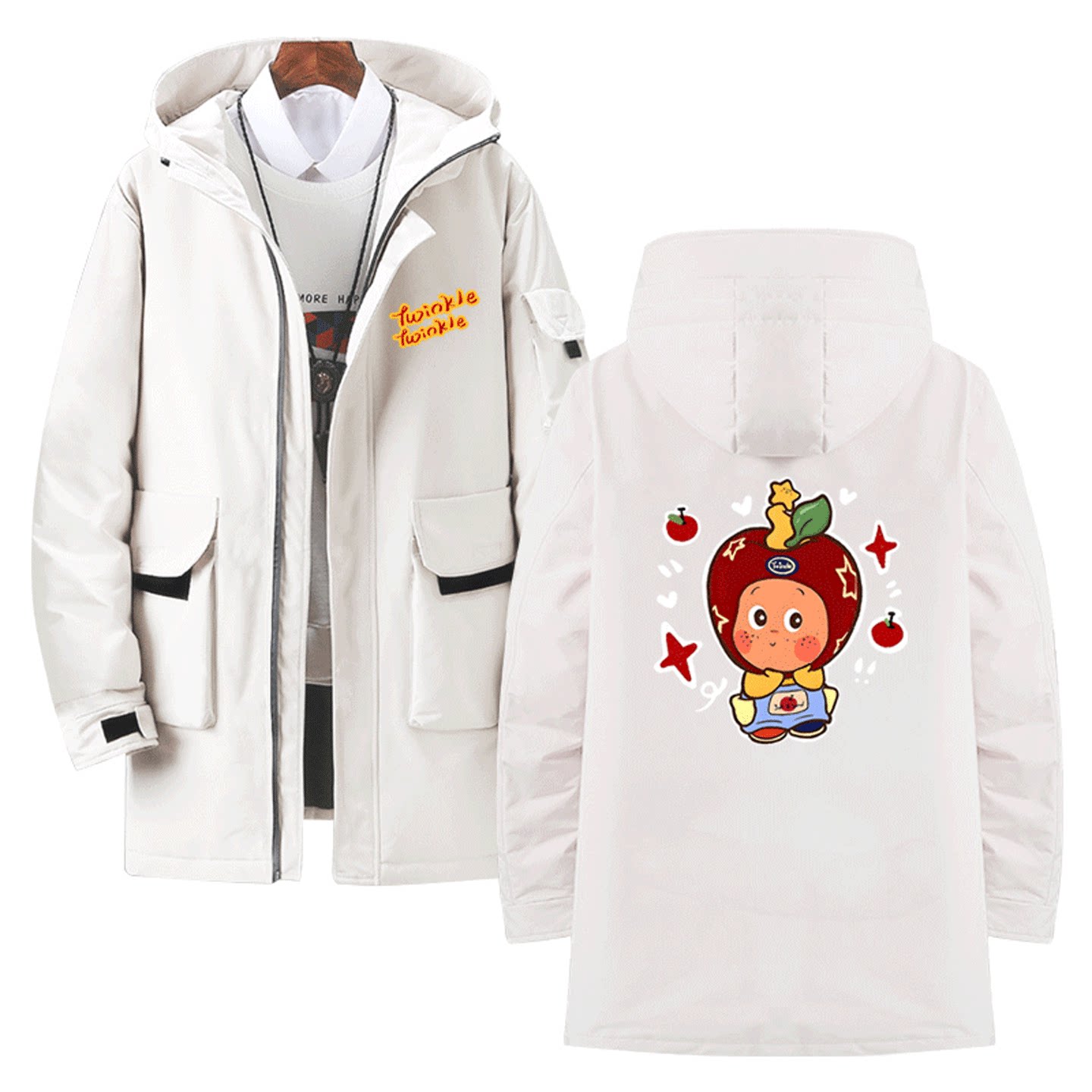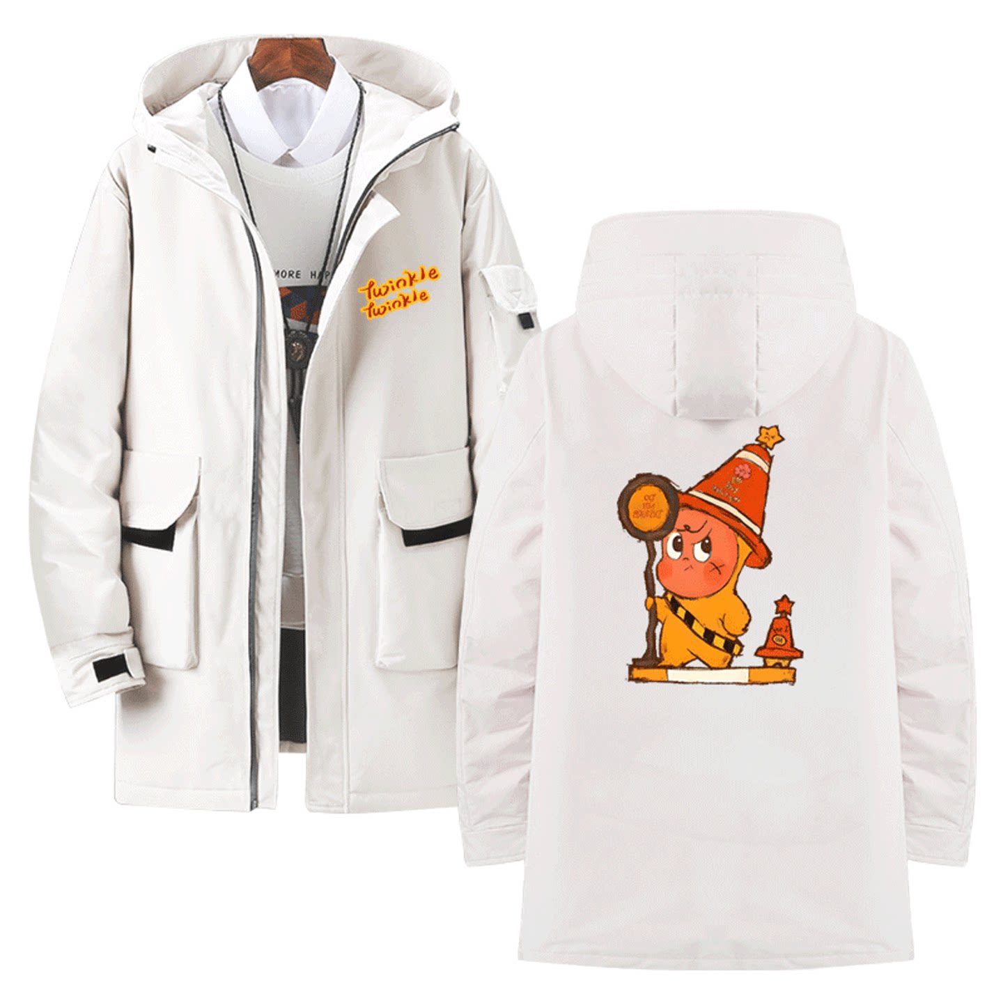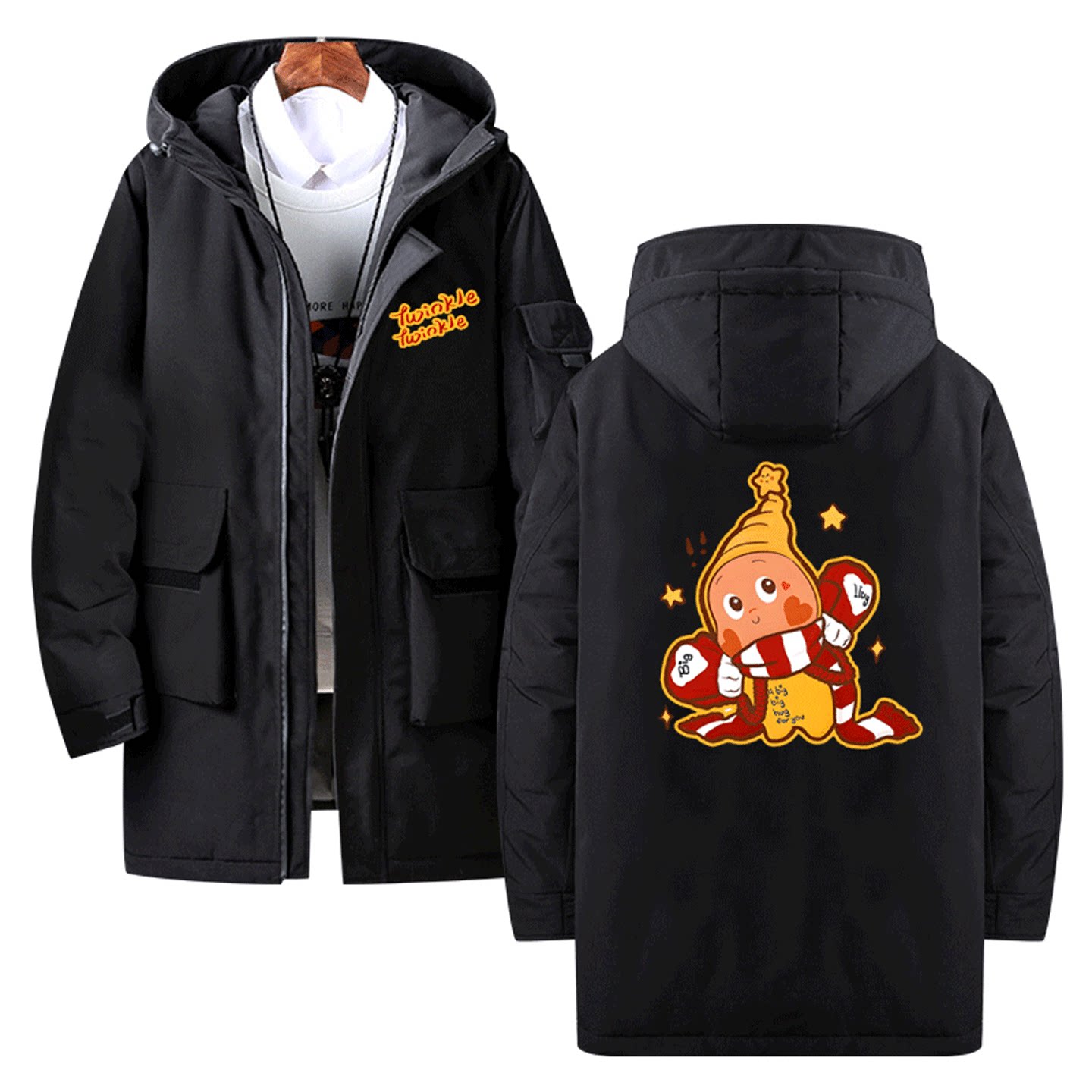 我们都是星星人卡通可爱周边动漫印花男女情侣可定制中长款羽绒服