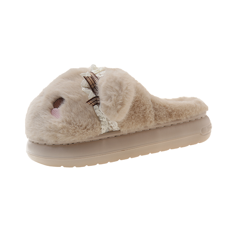 棉拖鞋冬季室内居家月子保暖毛绒防滑可外穿卡通可爱蕾丝兔子拖鞋