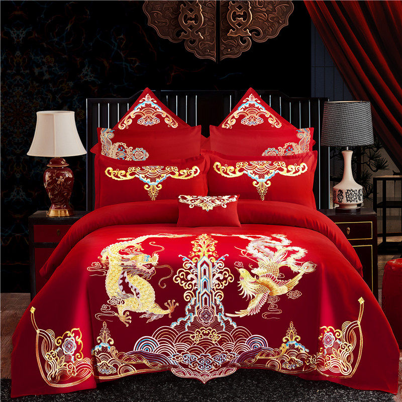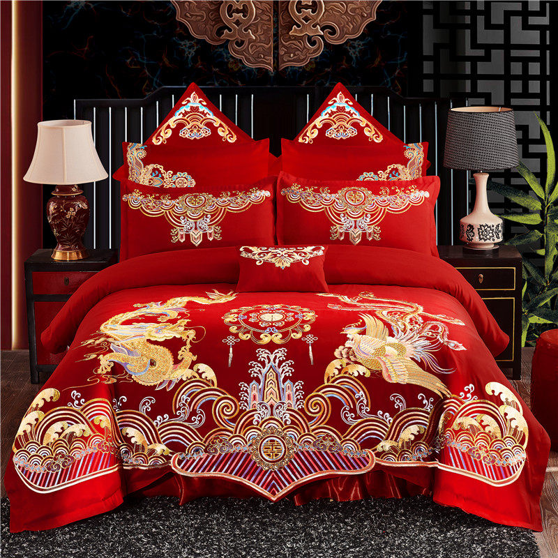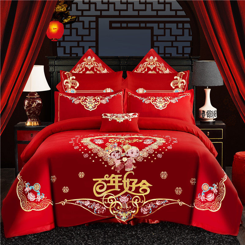结婚四件套新婚床上用q品婚庆四件套大红喜被绣花床单被套六八件