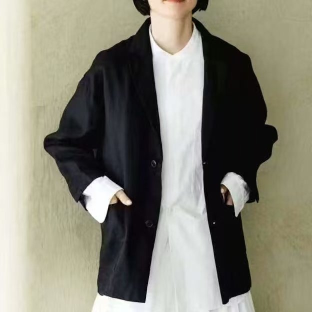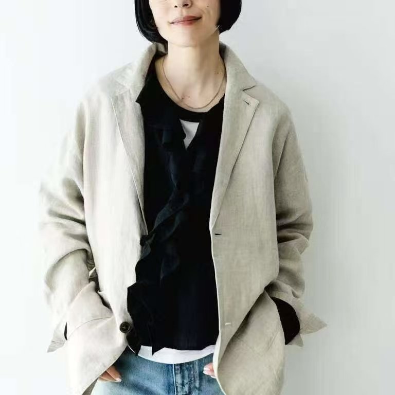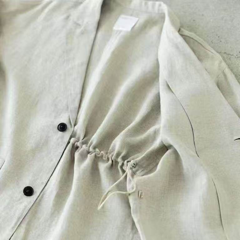 日系眠麻腰部抽绳款西装外套(25040217)抖音商城爆款好物