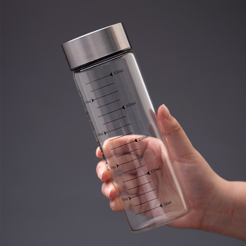 玻璃杯子家用喝水单层加厚泡茶杯男款带盖刻度耐高温2024新款水杯