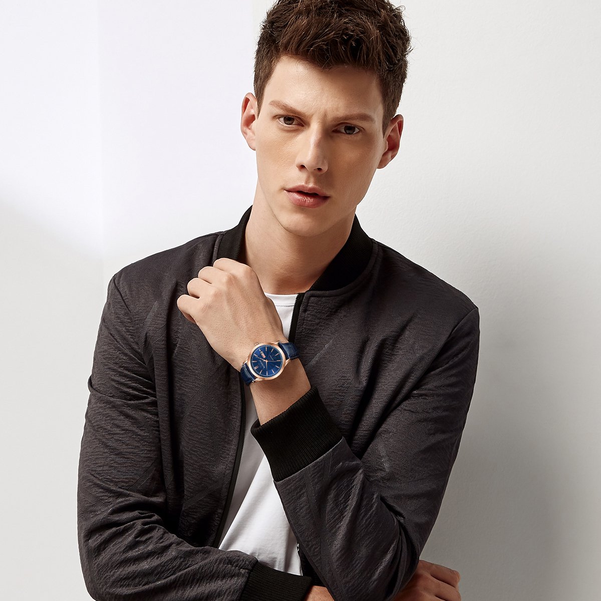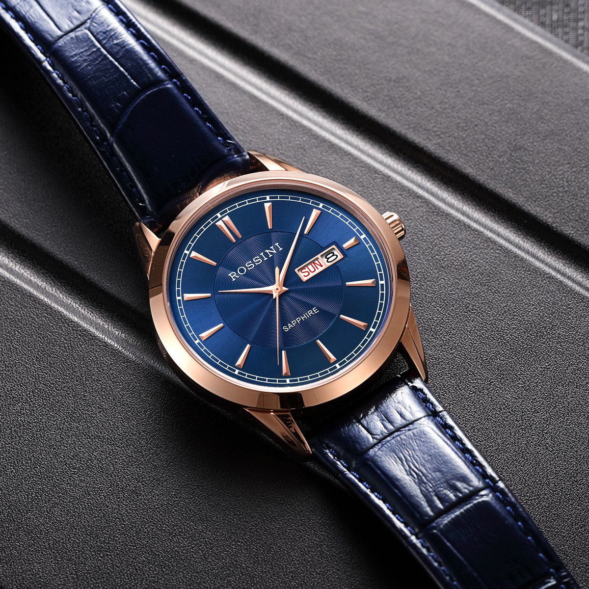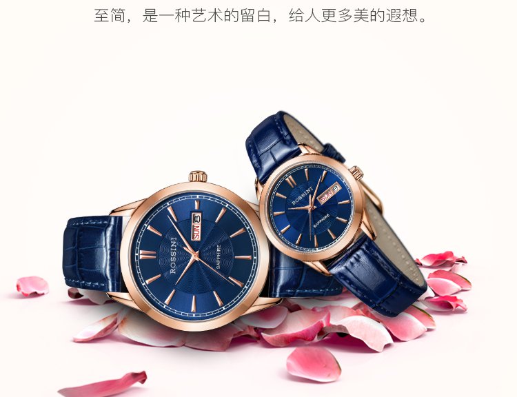 正品罗西尼情侣表男士蓝色皮带石英表女表双日历休闲防水时尚手表