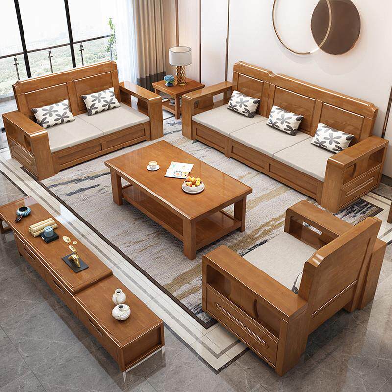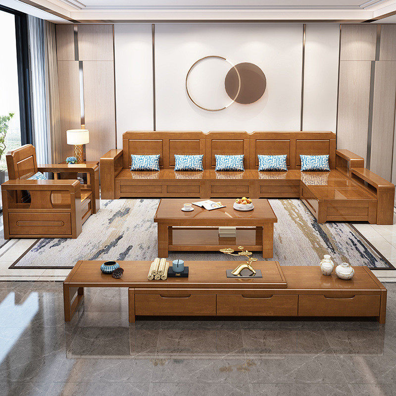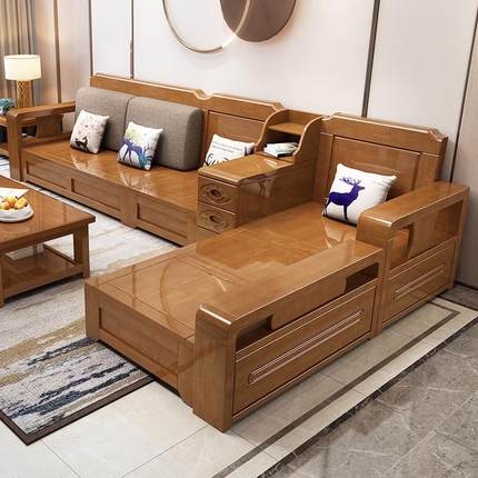中式实木沙发简约布艺沙发组合大小户型冬夏两用高箱储物转角客厅
