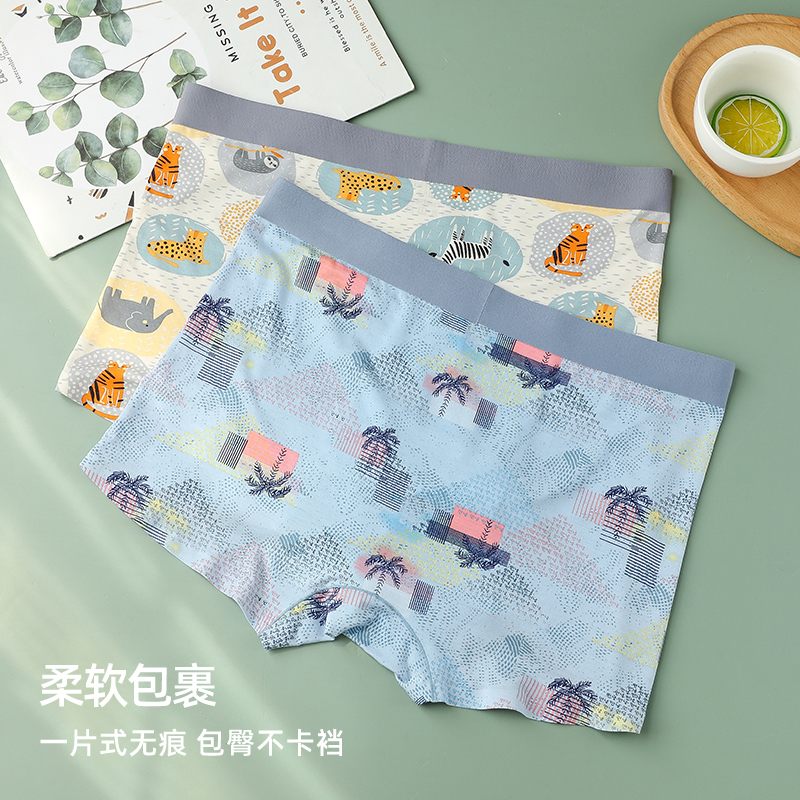 芝芝桃桃~画内2条内裤男莫代尔无痕个性卡通男士内裤中腰平角内裤